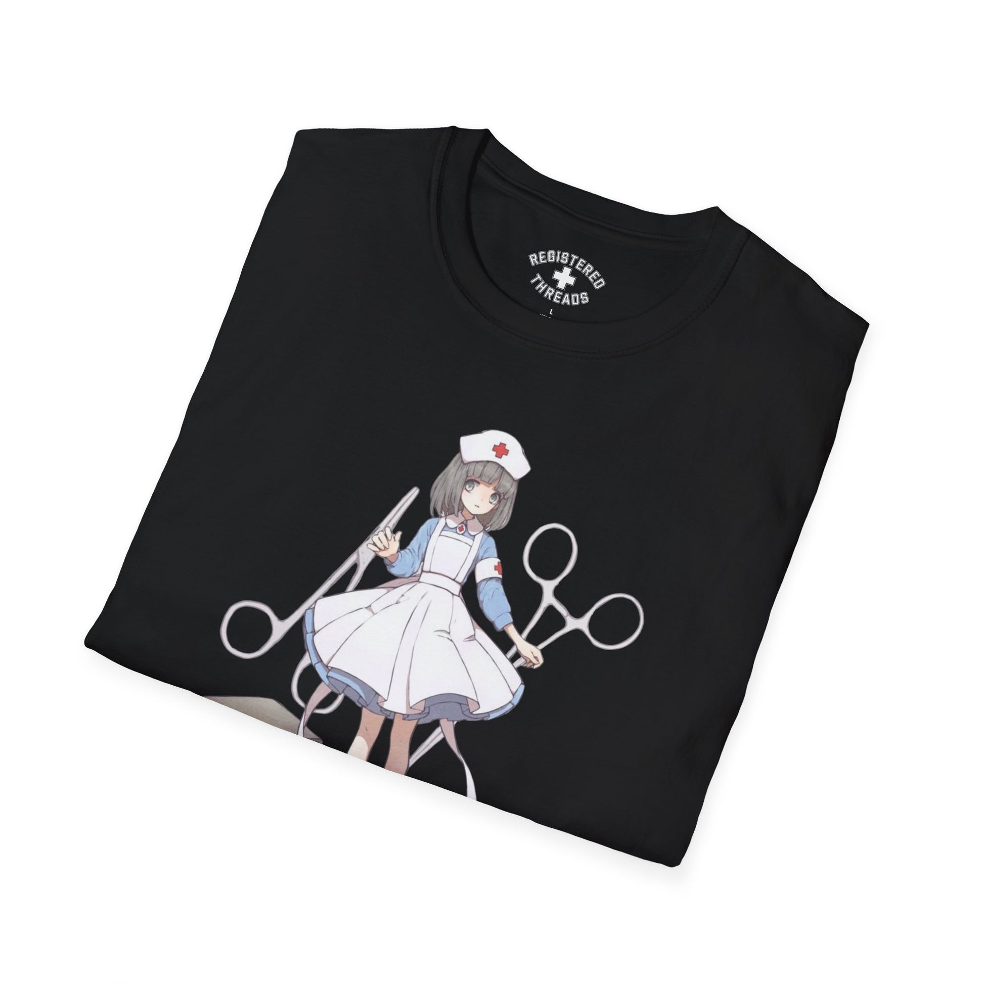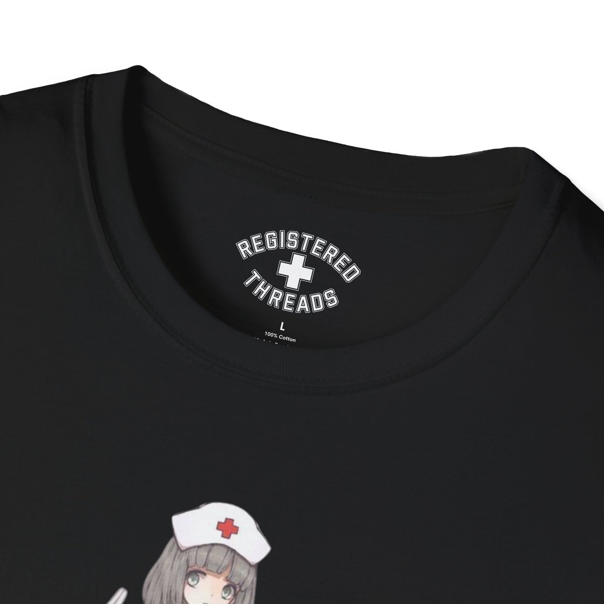 "Anime Nurse" is a Registered Threads original design printed on a premium "softstyle" tee.