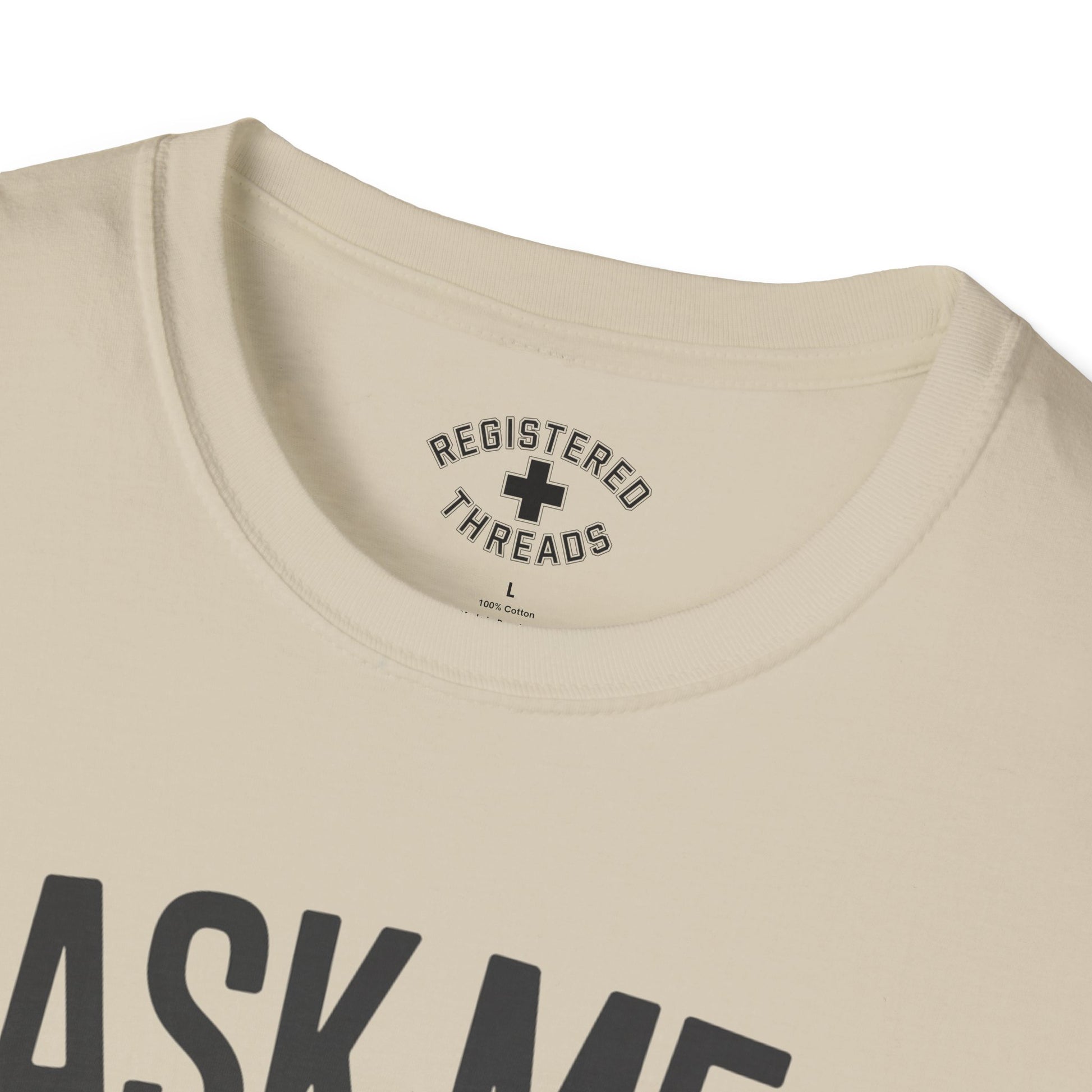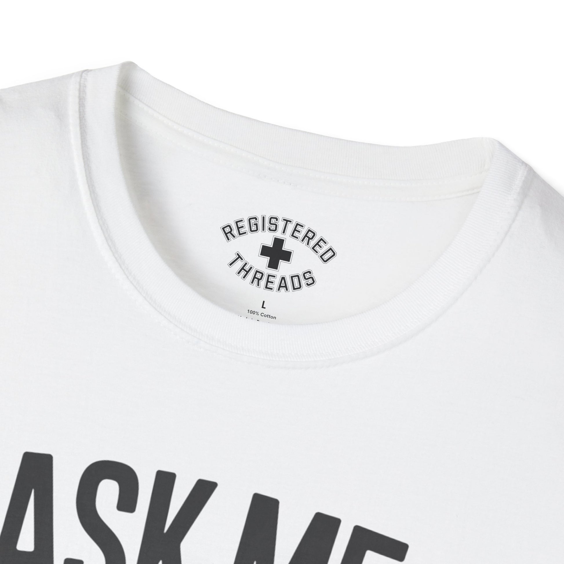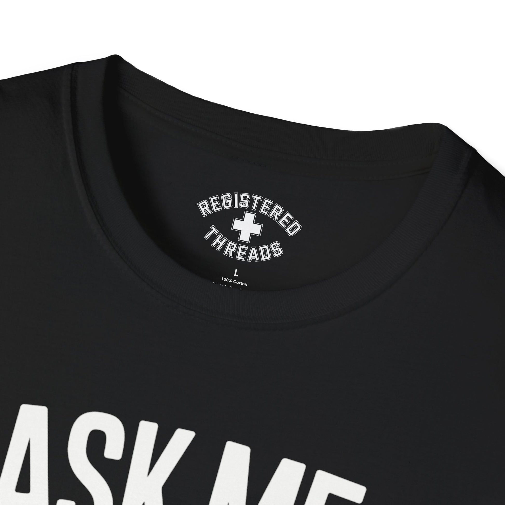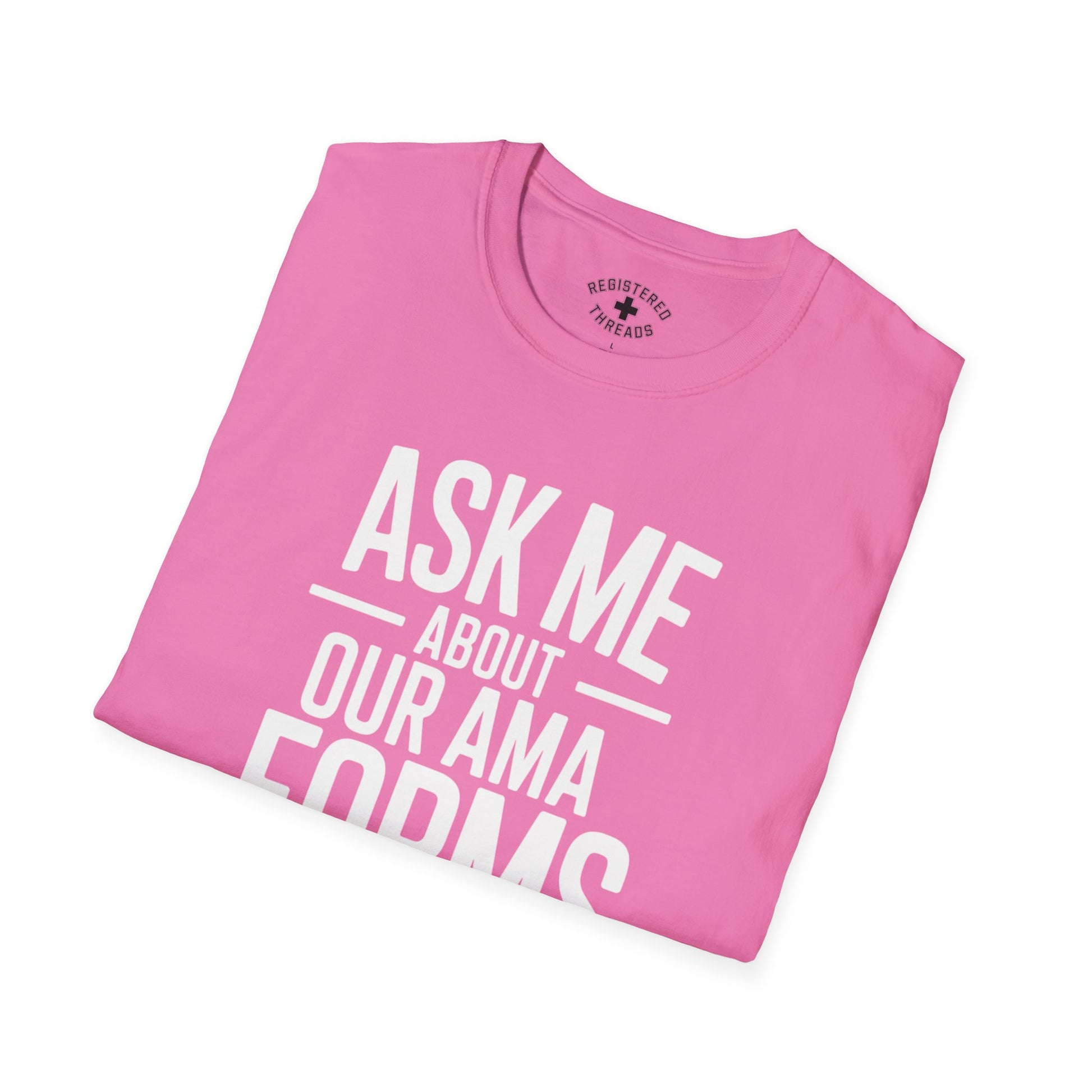 "Ask Me About Our AMA Forms" is a Registered Threads original design printed on a premium "softstyle" tee.