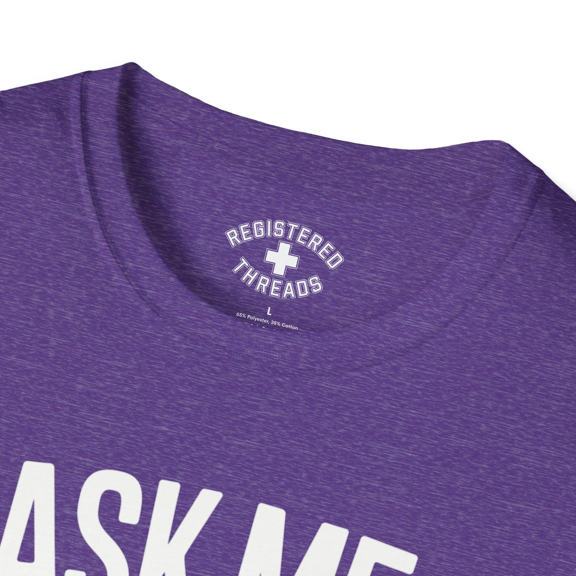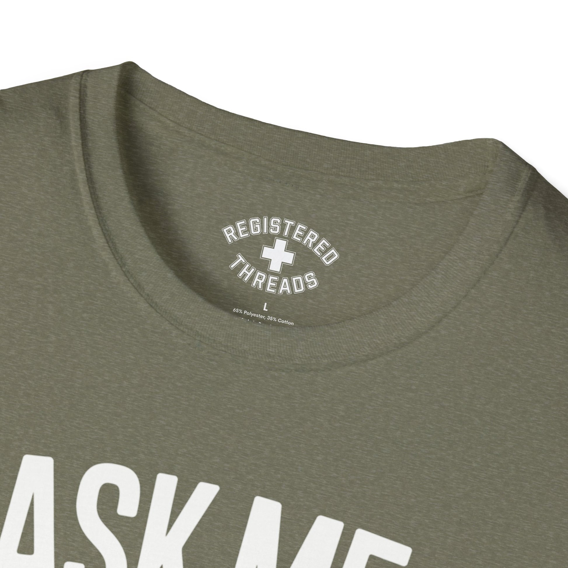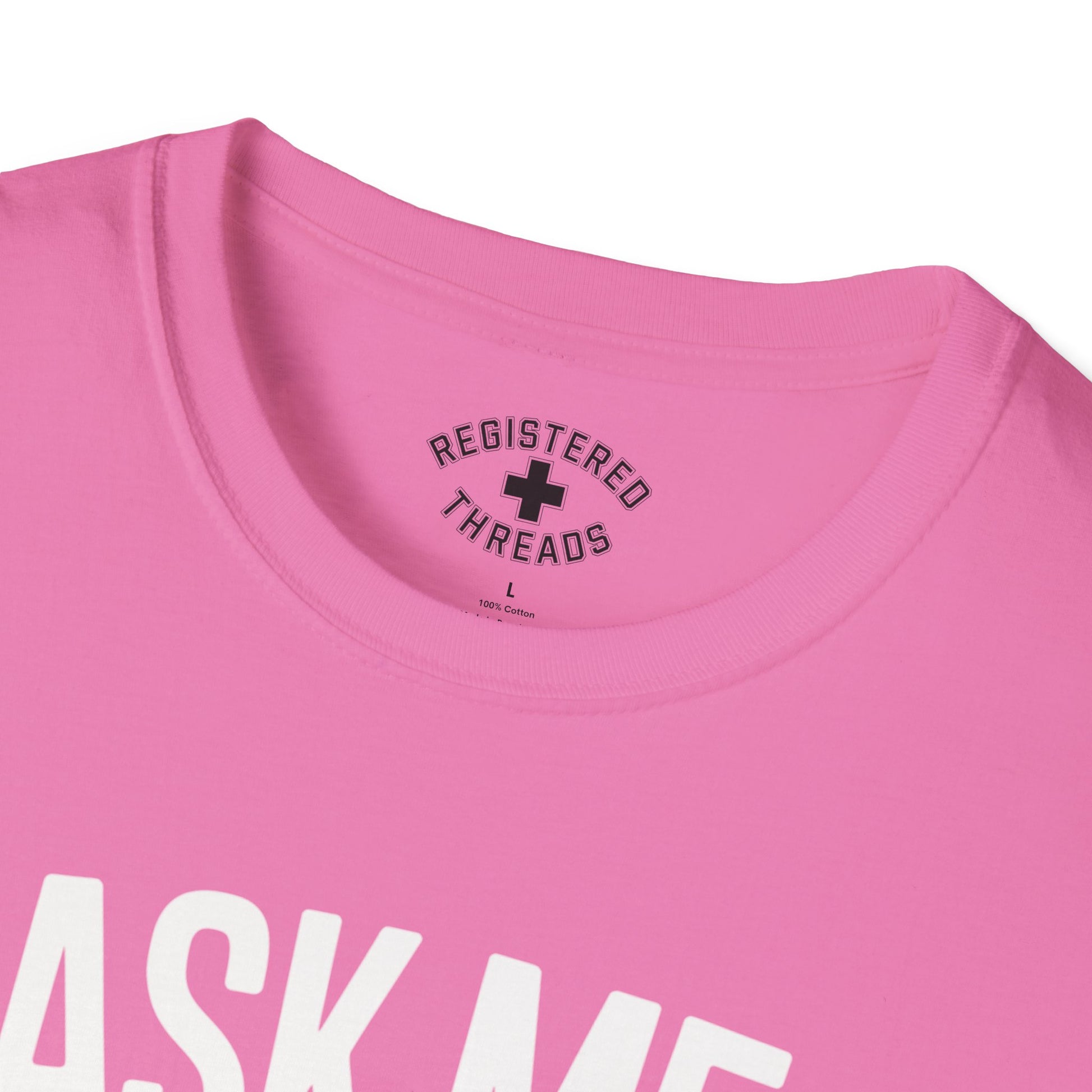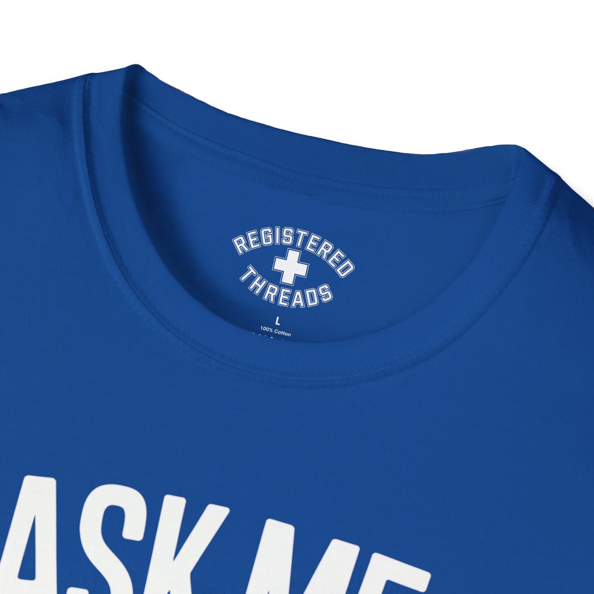 "Ask Me About Our AMA Forms" is a Registered Threads original design printed on a premium "softstyle" tee.