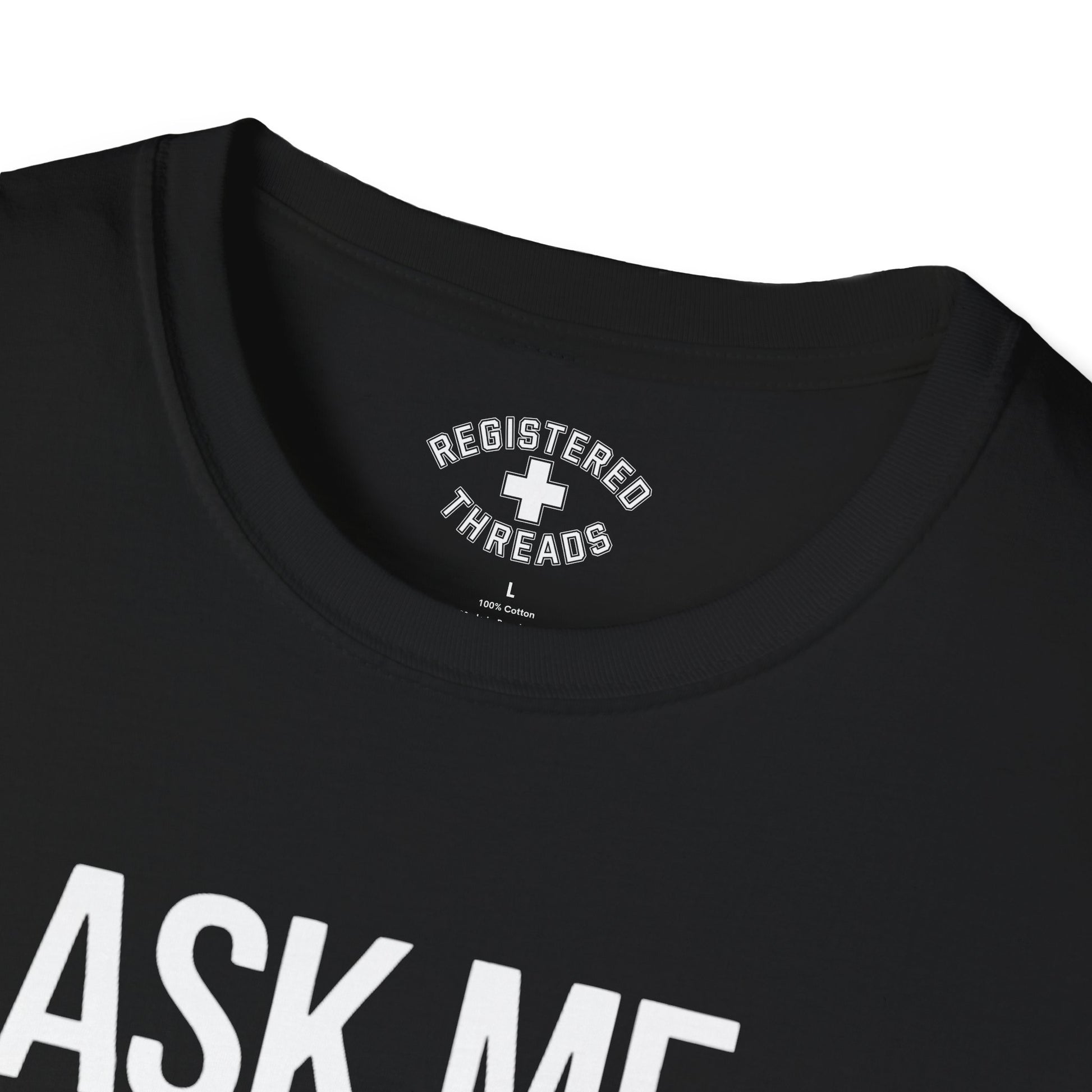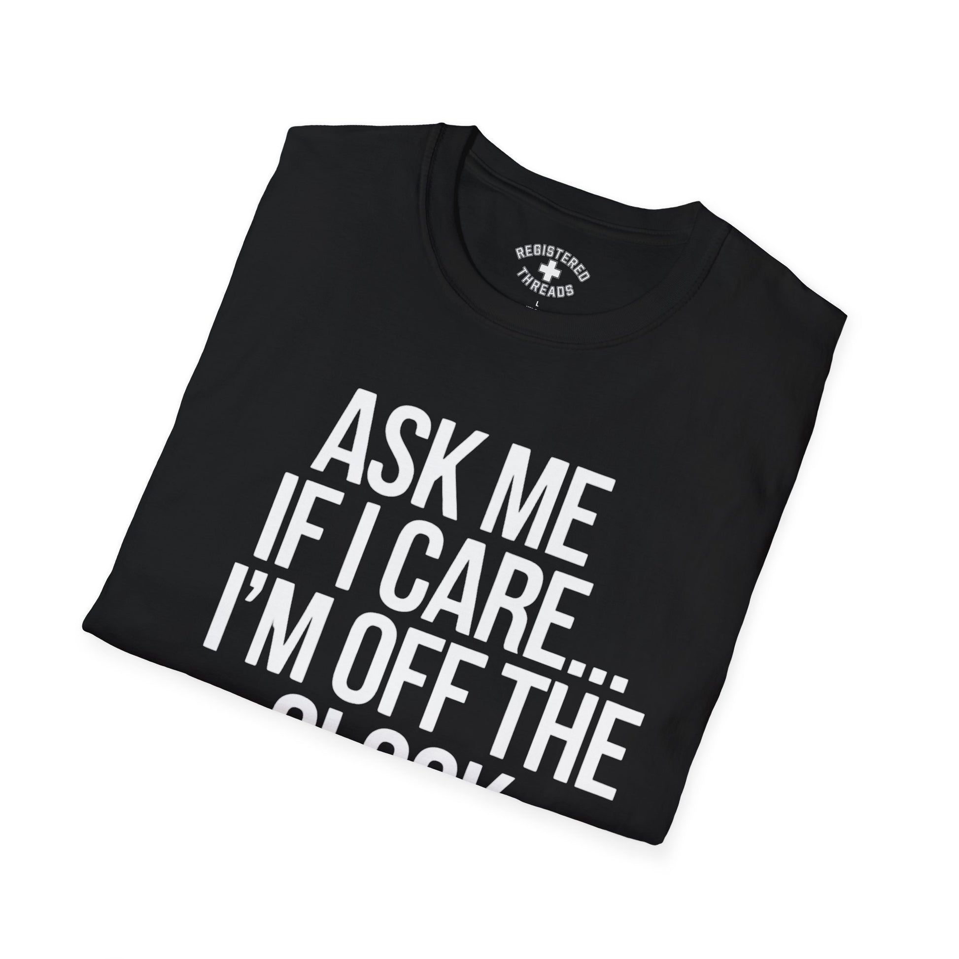"Ask Me If I Care..." is a Registered Threads original design printed on a premium "softstyle" tee.