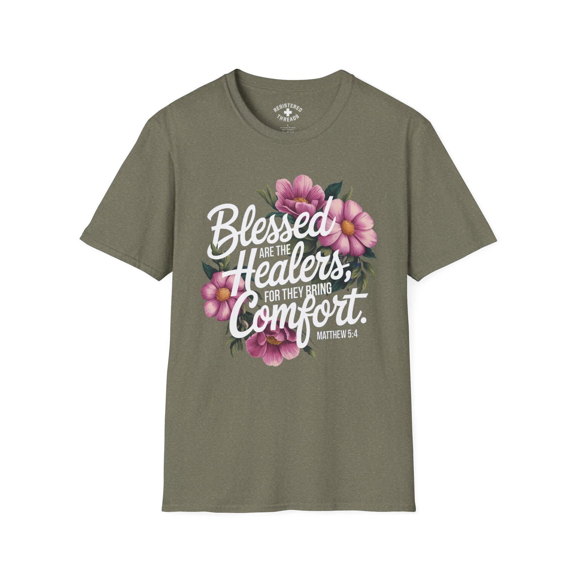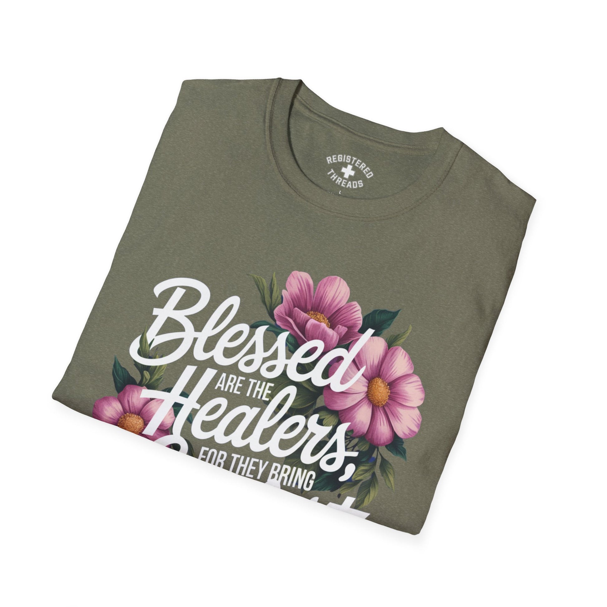 "Blessed are the Healers" is a Registered Threads original design printed on a premium "softstyle" tee.