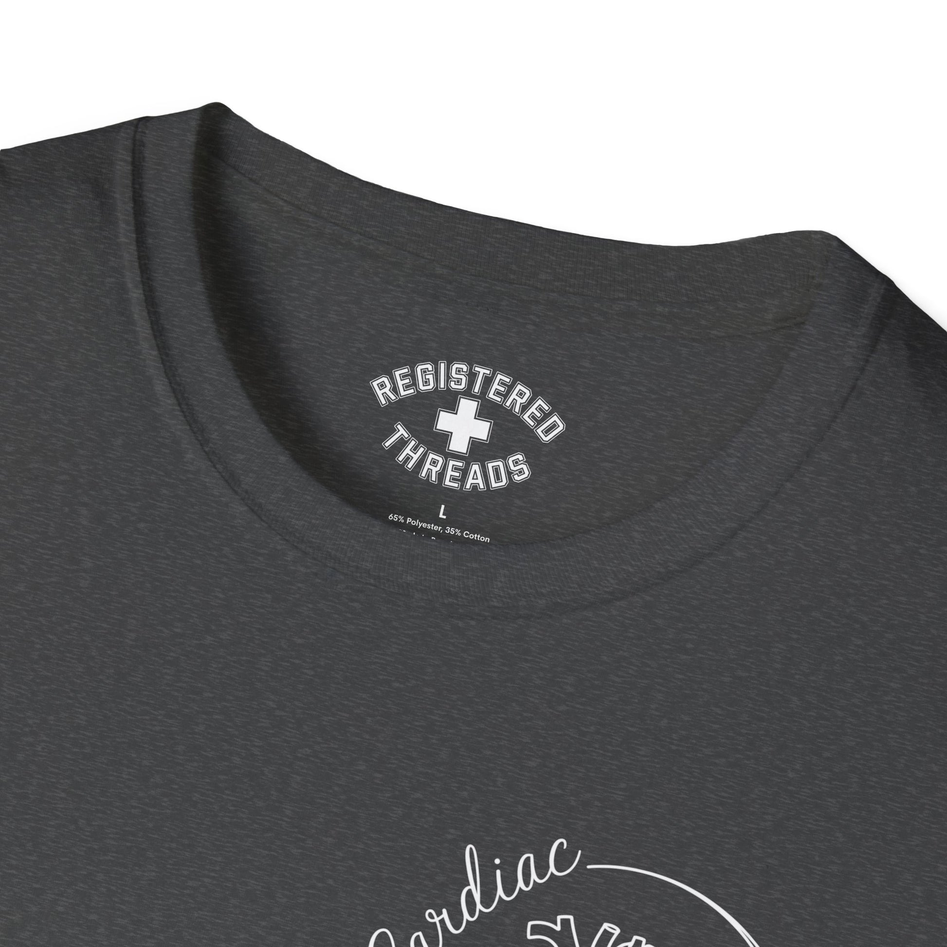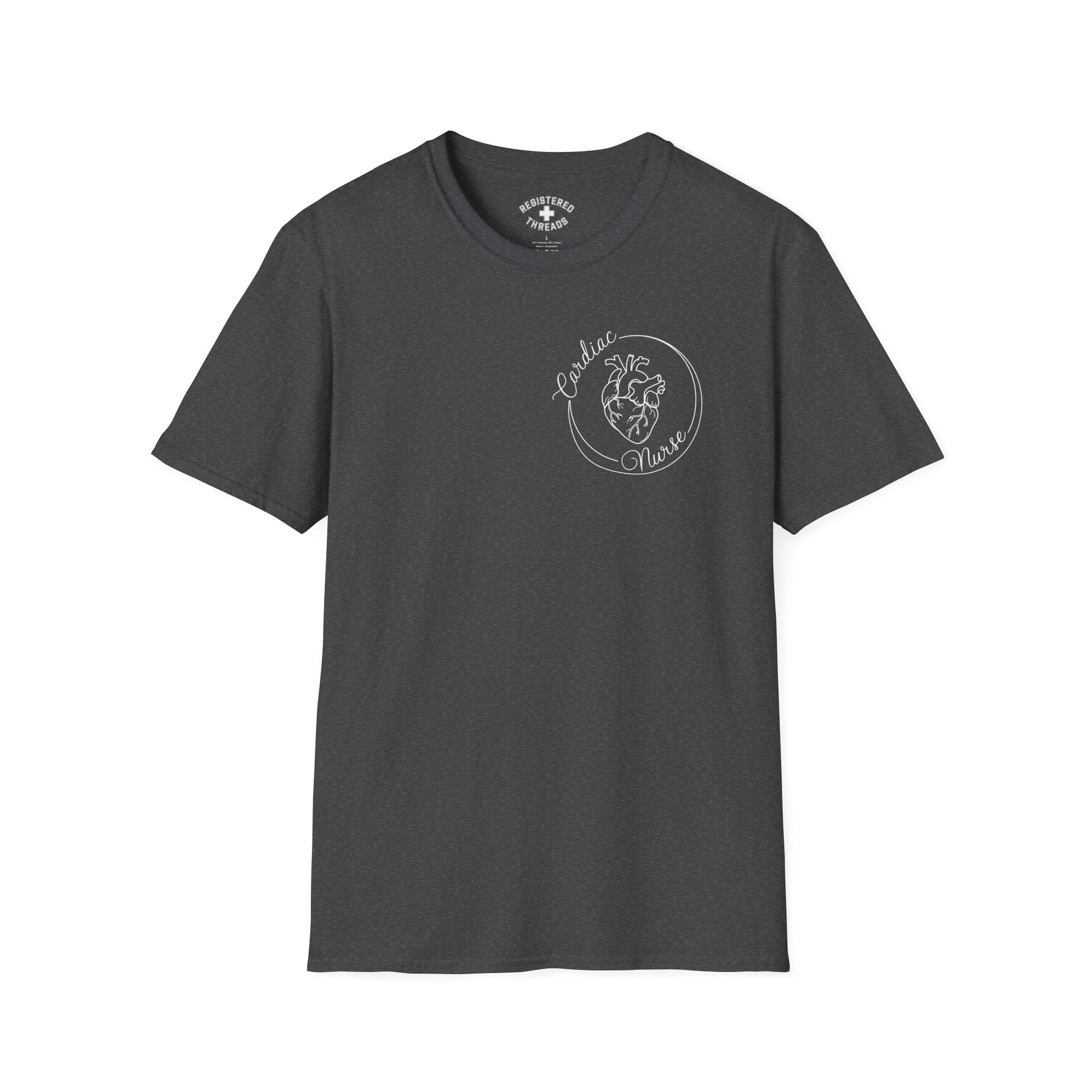 "Cardiac Nurse" is a Registered Threads original design printed on a premium "softstyle" tee.