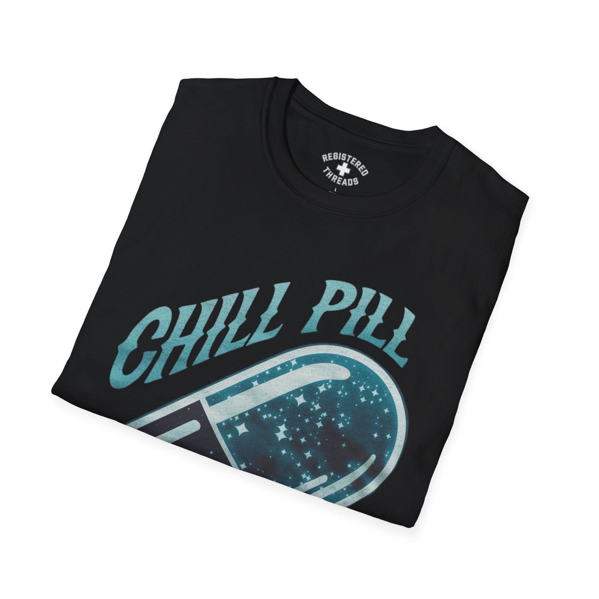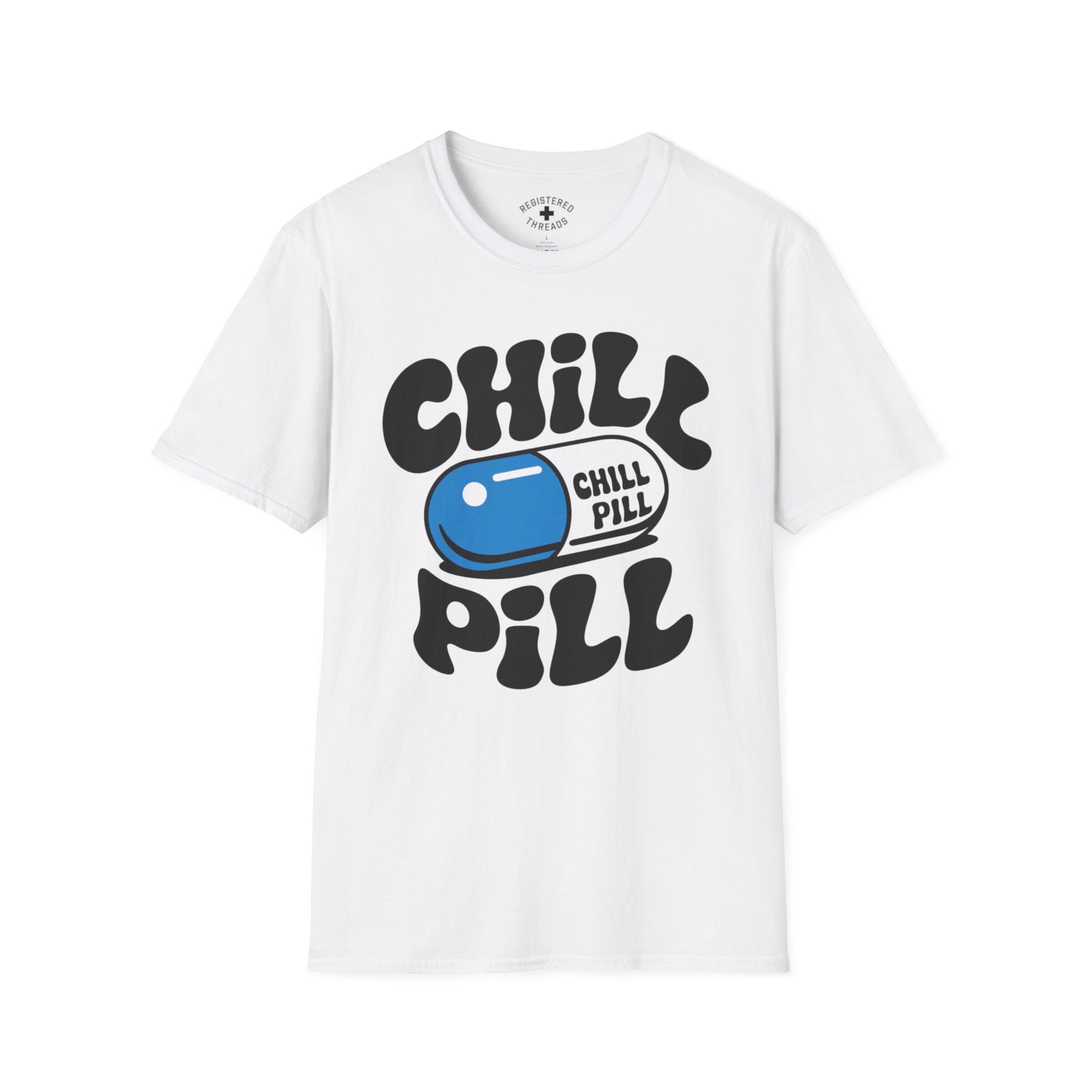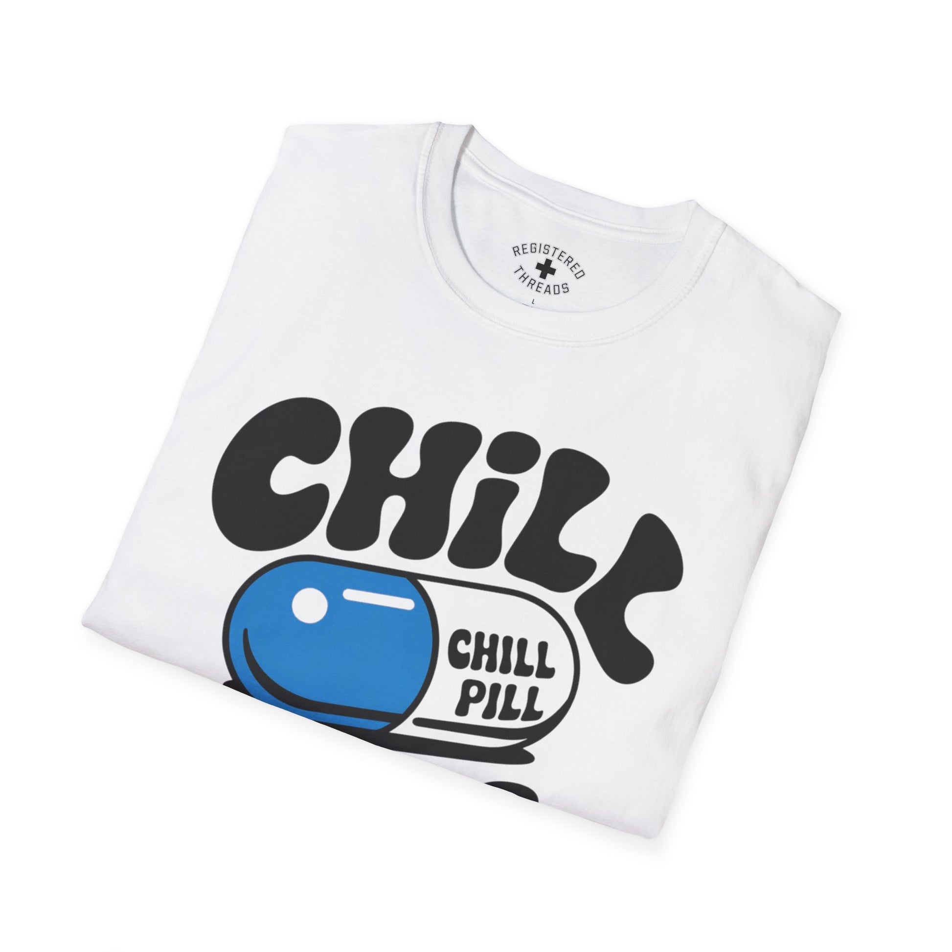 "Chill Pill" is a Registered Threads original design printed on a premium "softstyle" tee.