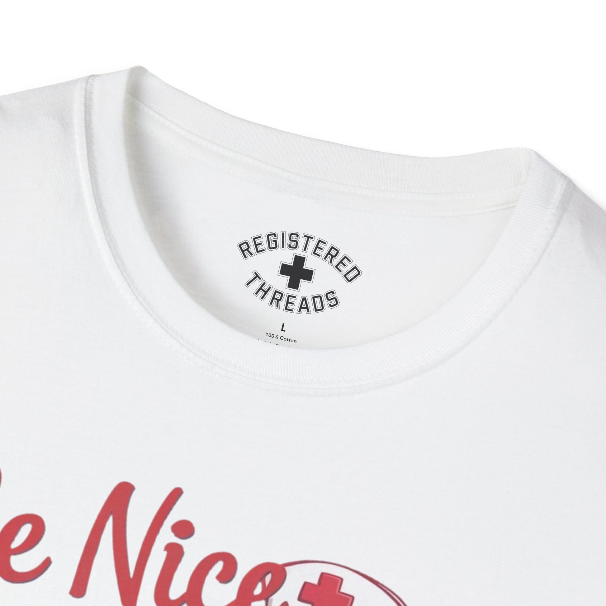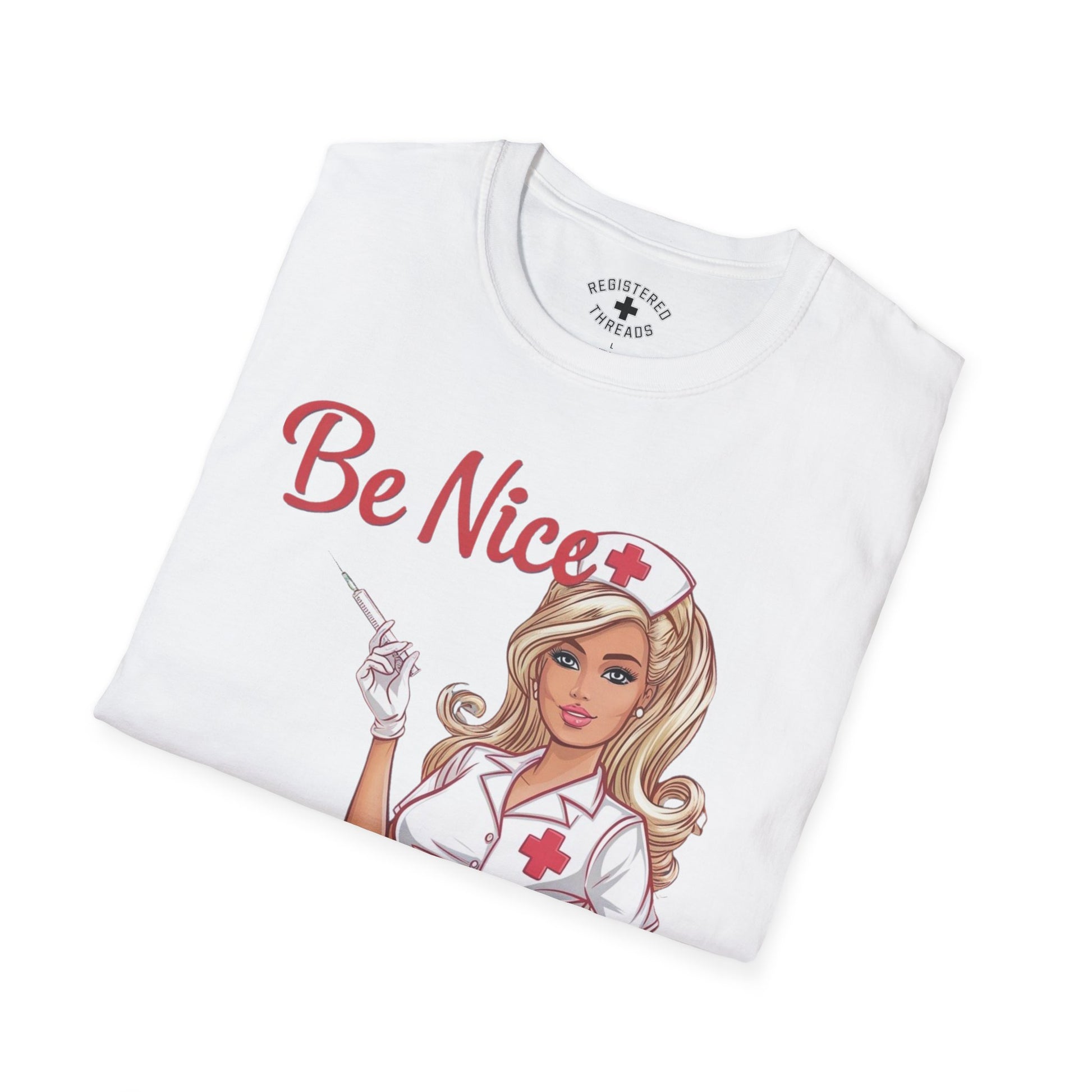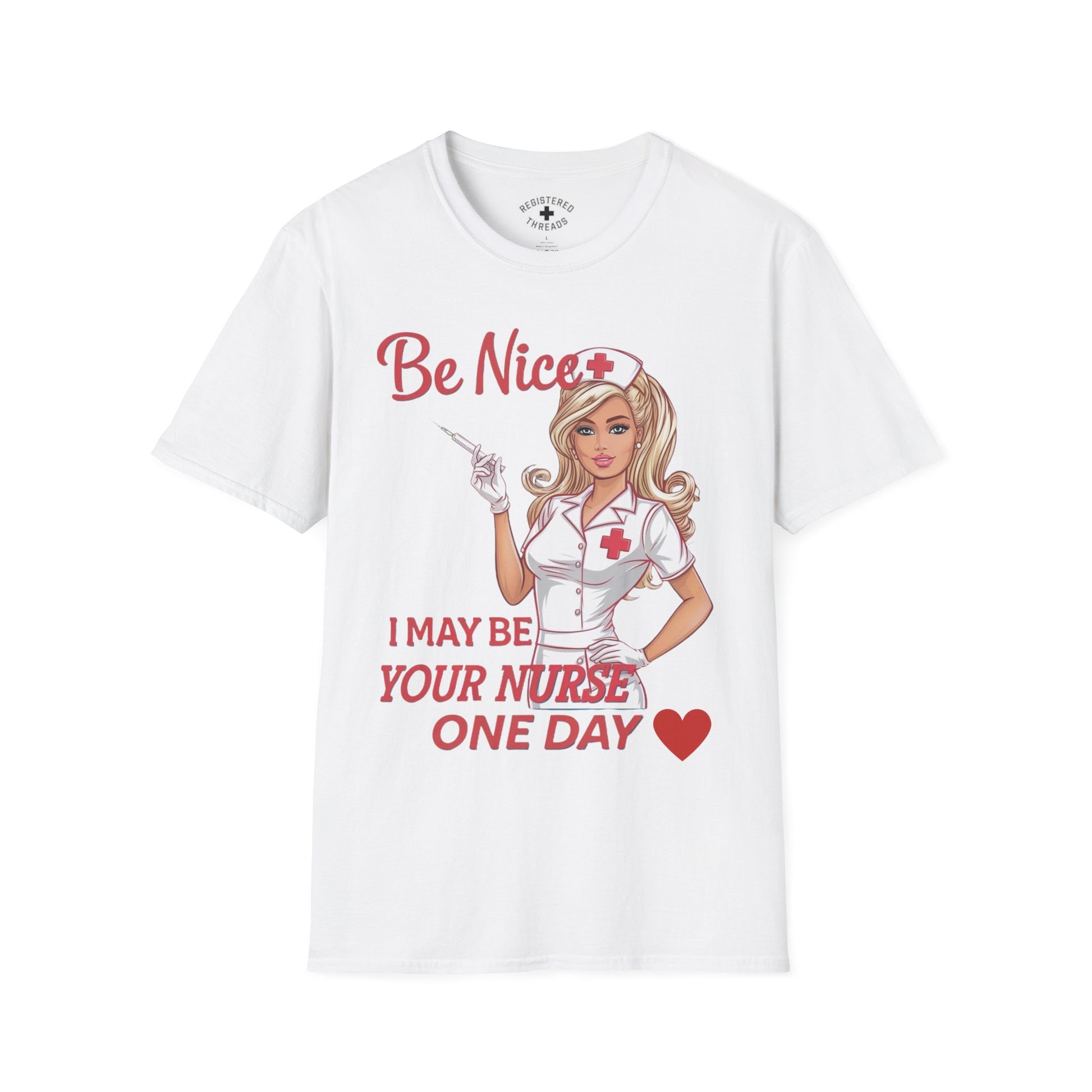 "I May Be Your Nurse" is a Registered Threads original design printed on a premium "softstyle" tee.