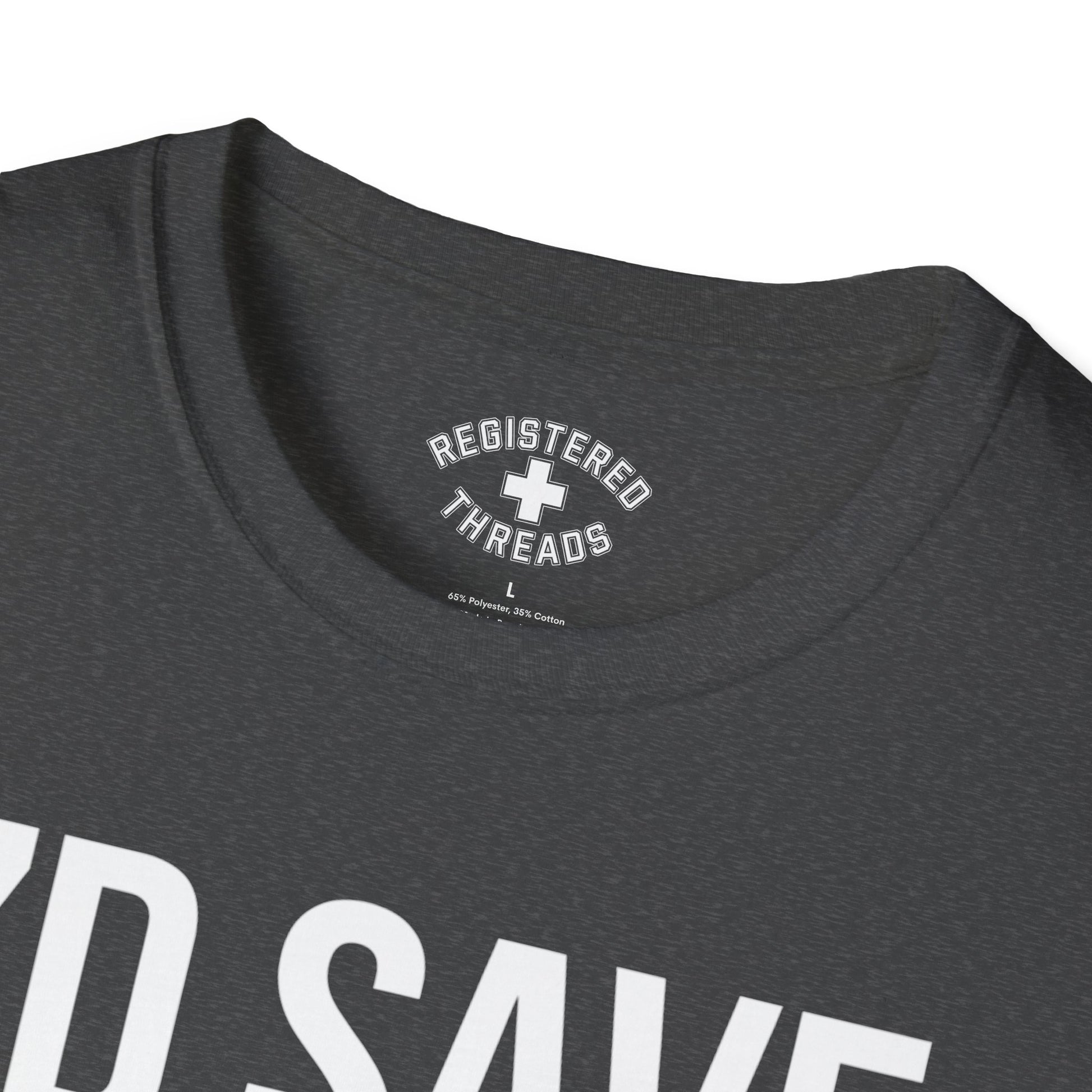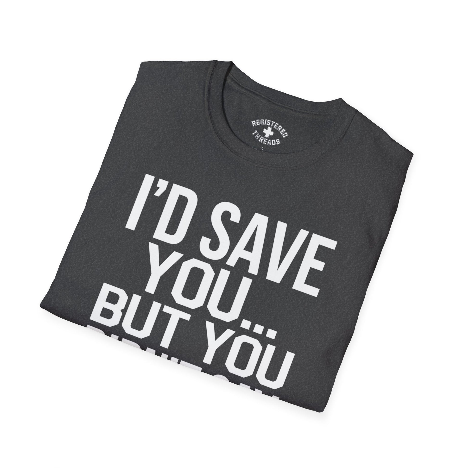 "I'd Save You... But You Didn't Say Please" is a Registered Threads original design printed on a premium "softstyle" tee.