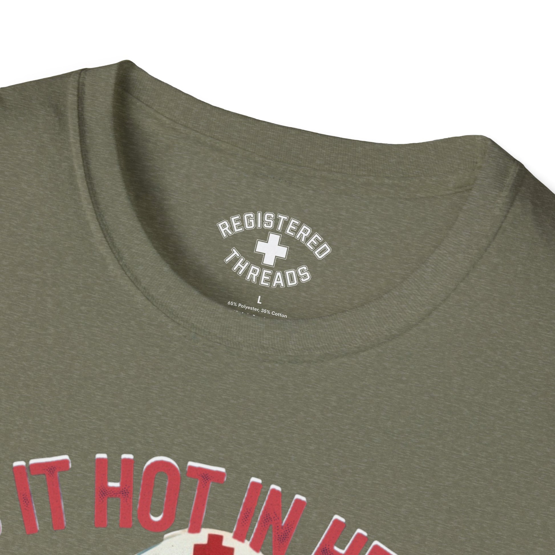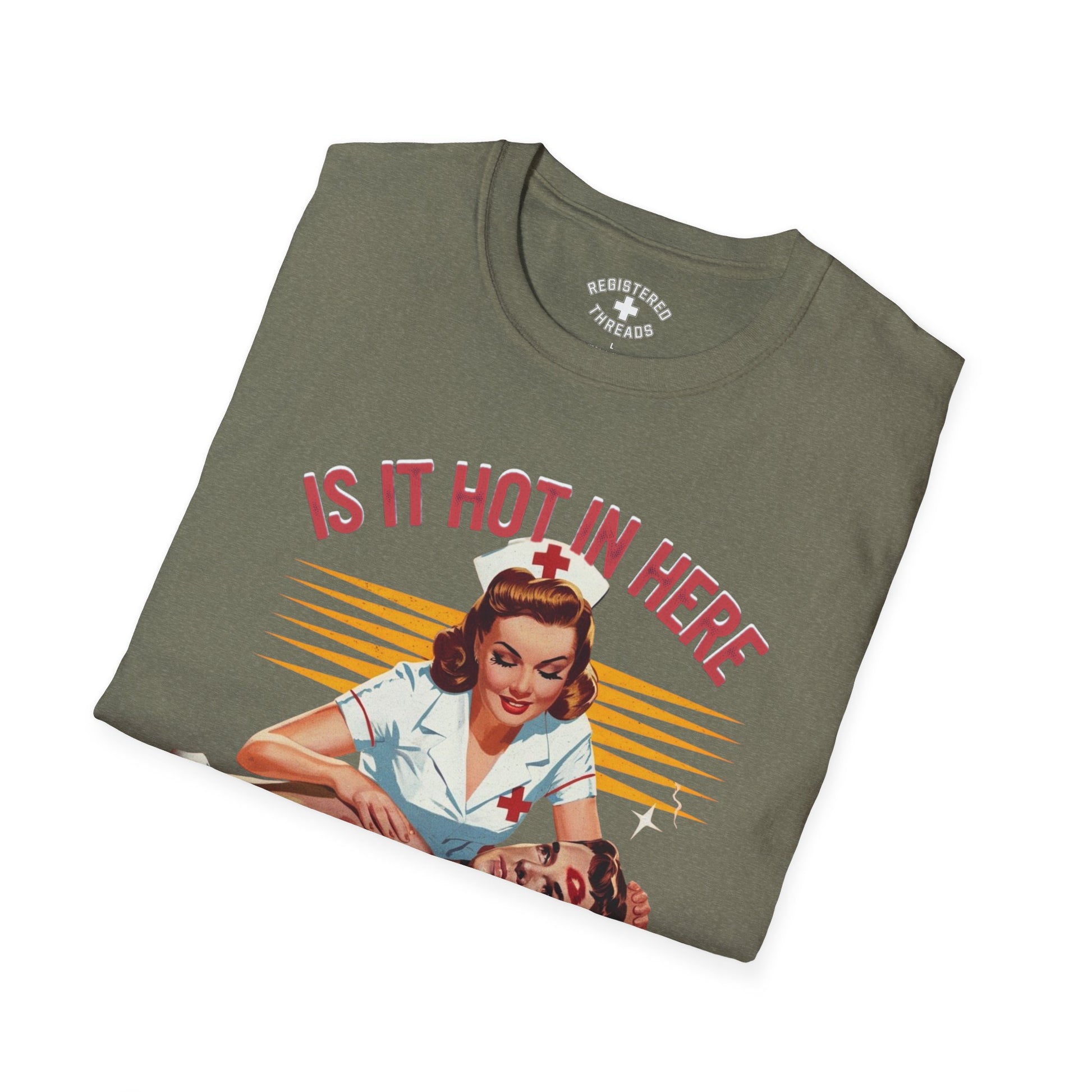 "Is It Hot in Here?" is a Registered Threads original design printed on a premium "softstyle" tee.