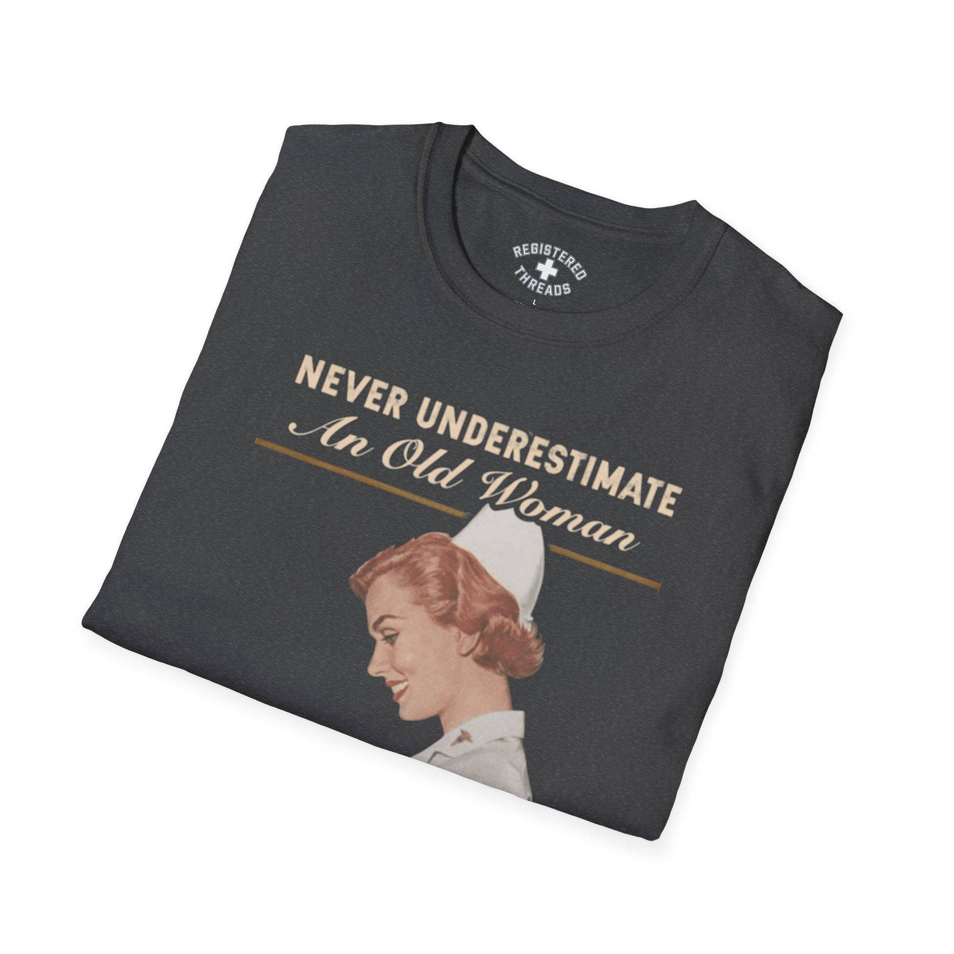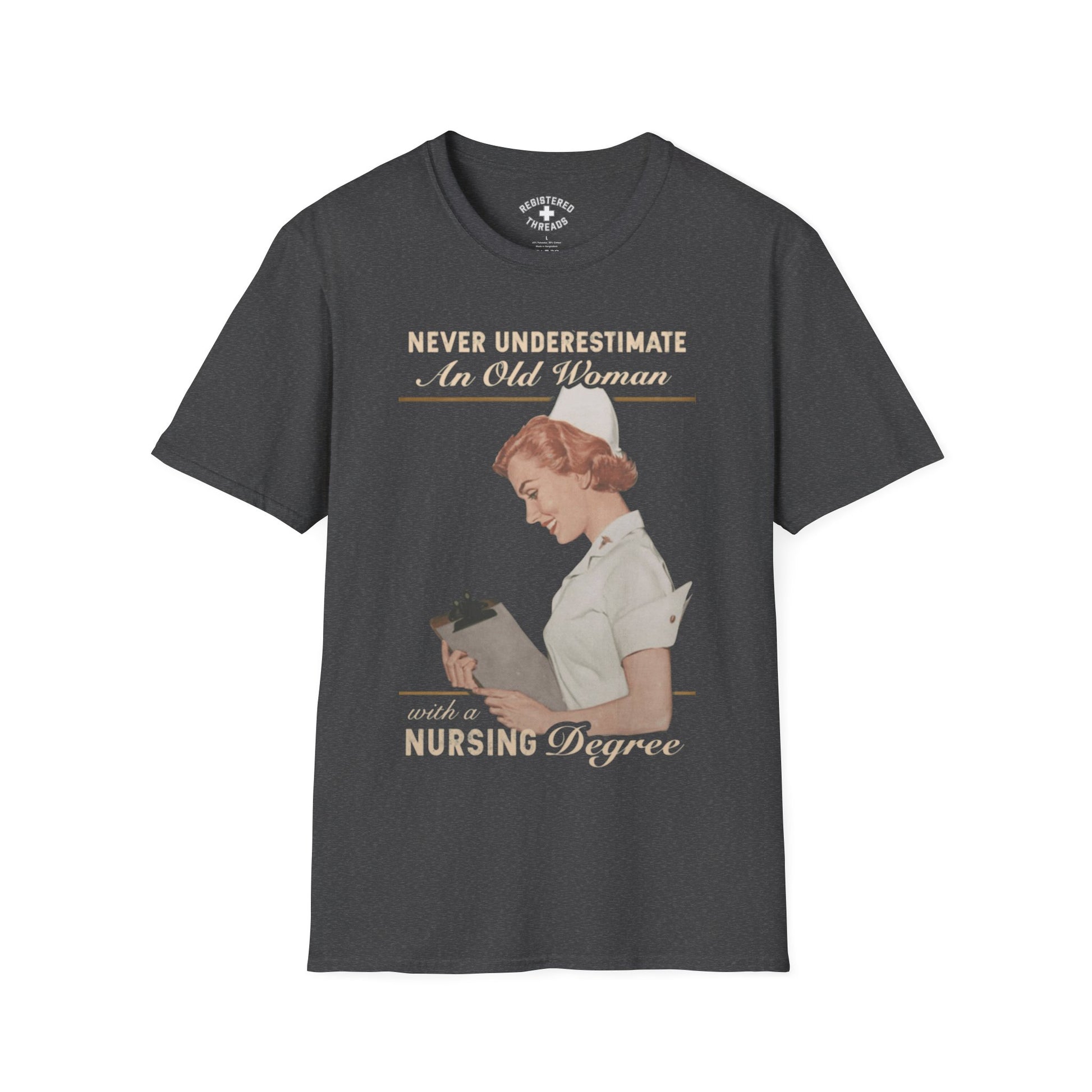 "Never Underestimate" is a Registered Threads original design printed on a premium "softstyle" tee.