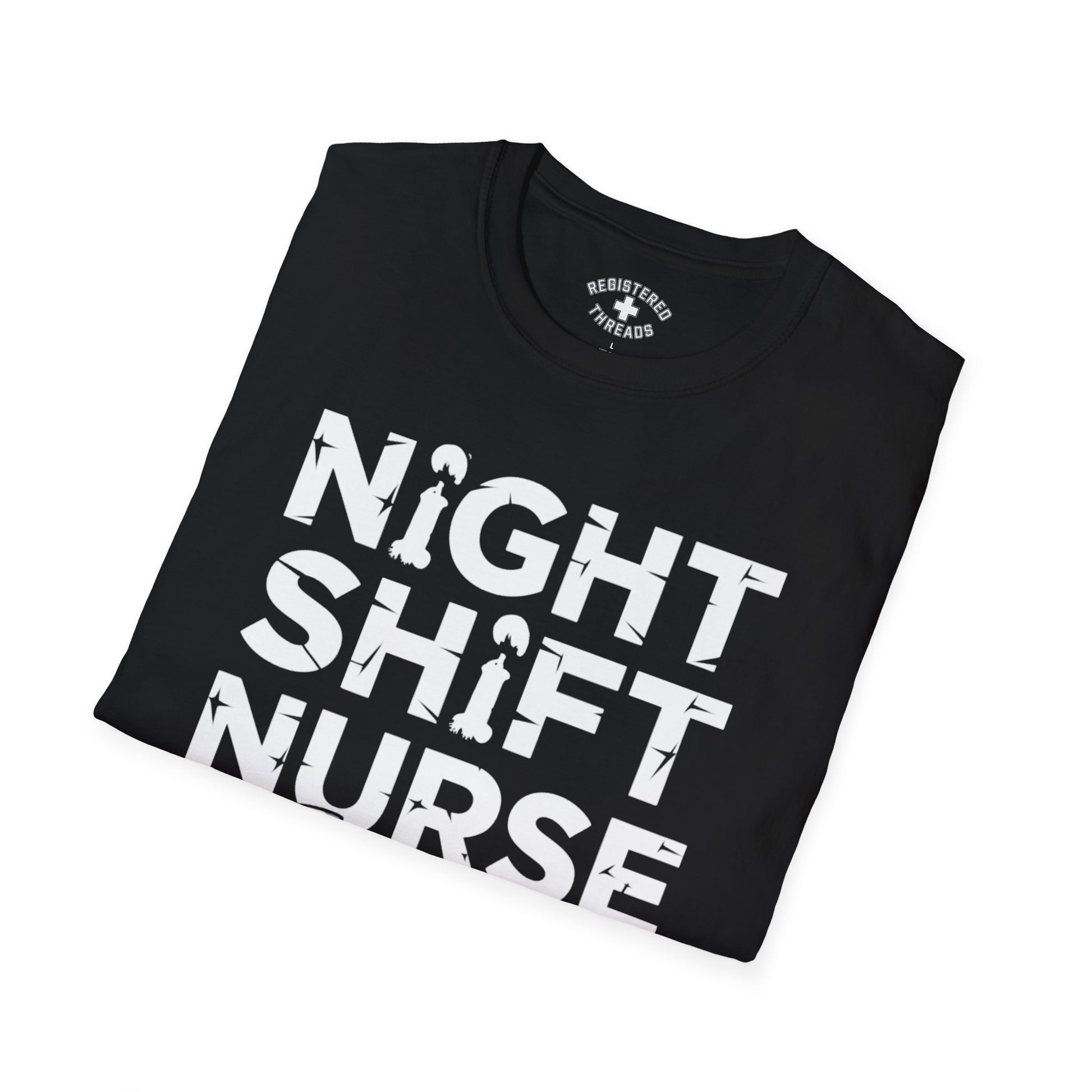 "Night RN" is a Registered Threads original design printed on a premium "softstyle" tee.