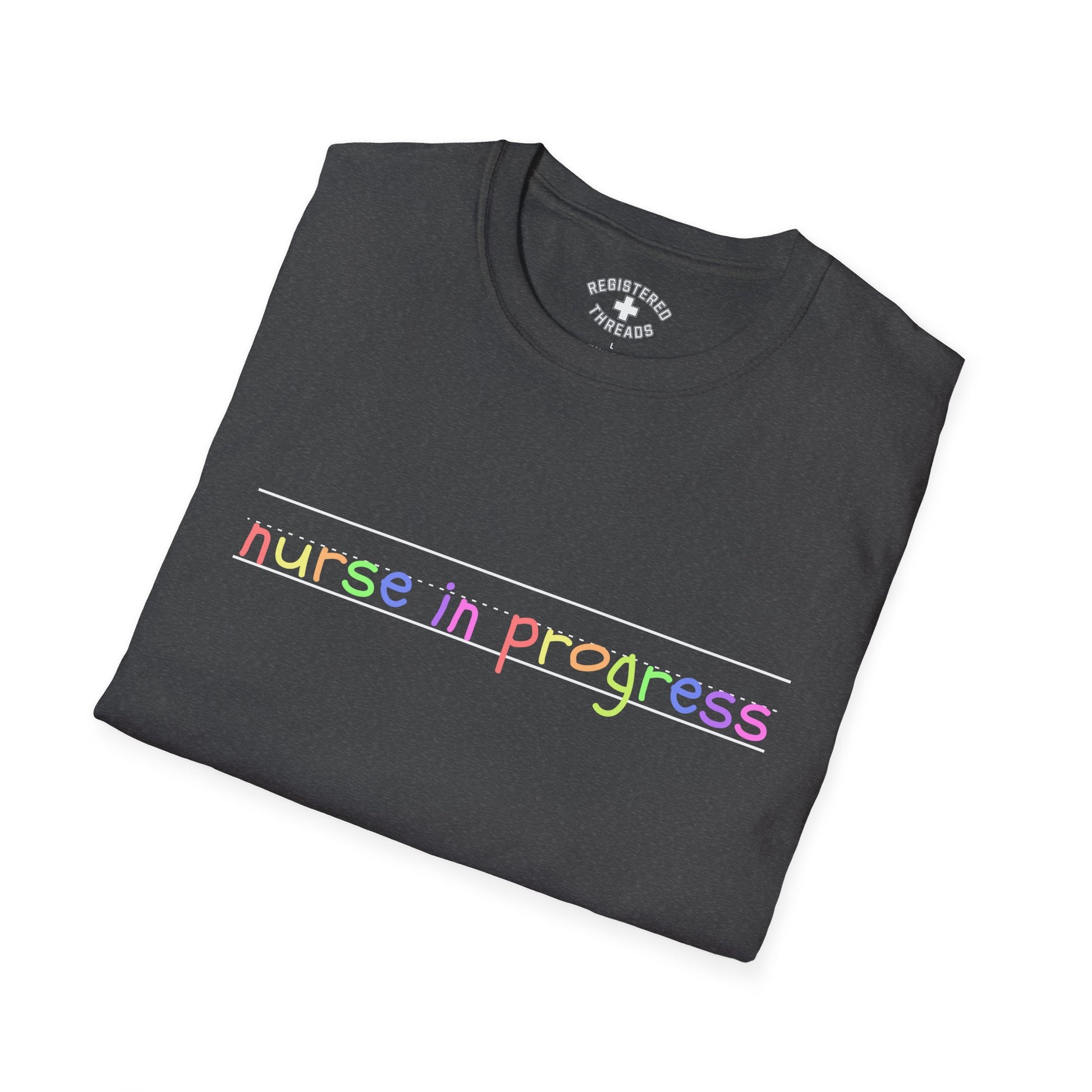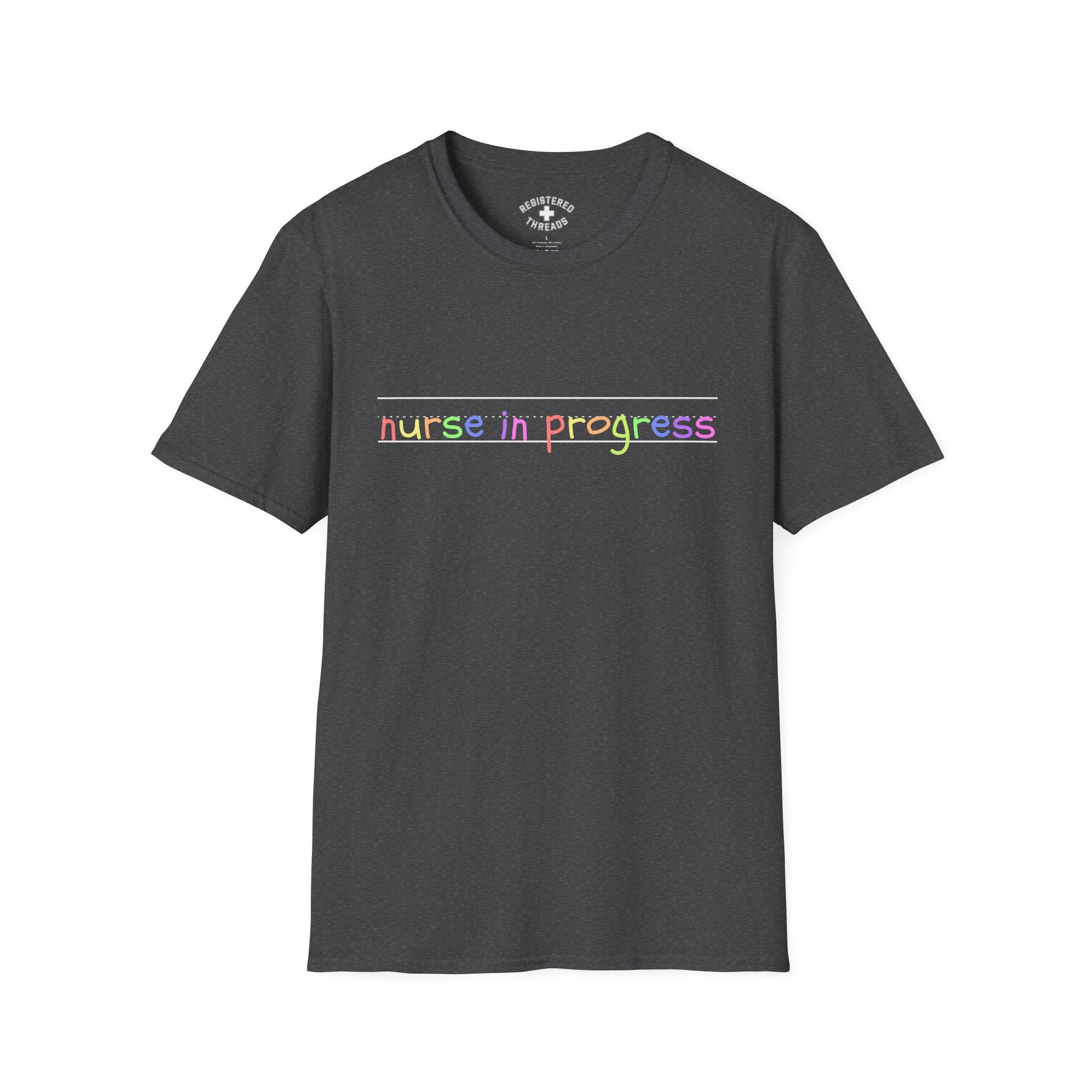 "Nurse In Progress" is a Registered Threads original design printed on a premium "softstyle" tee.