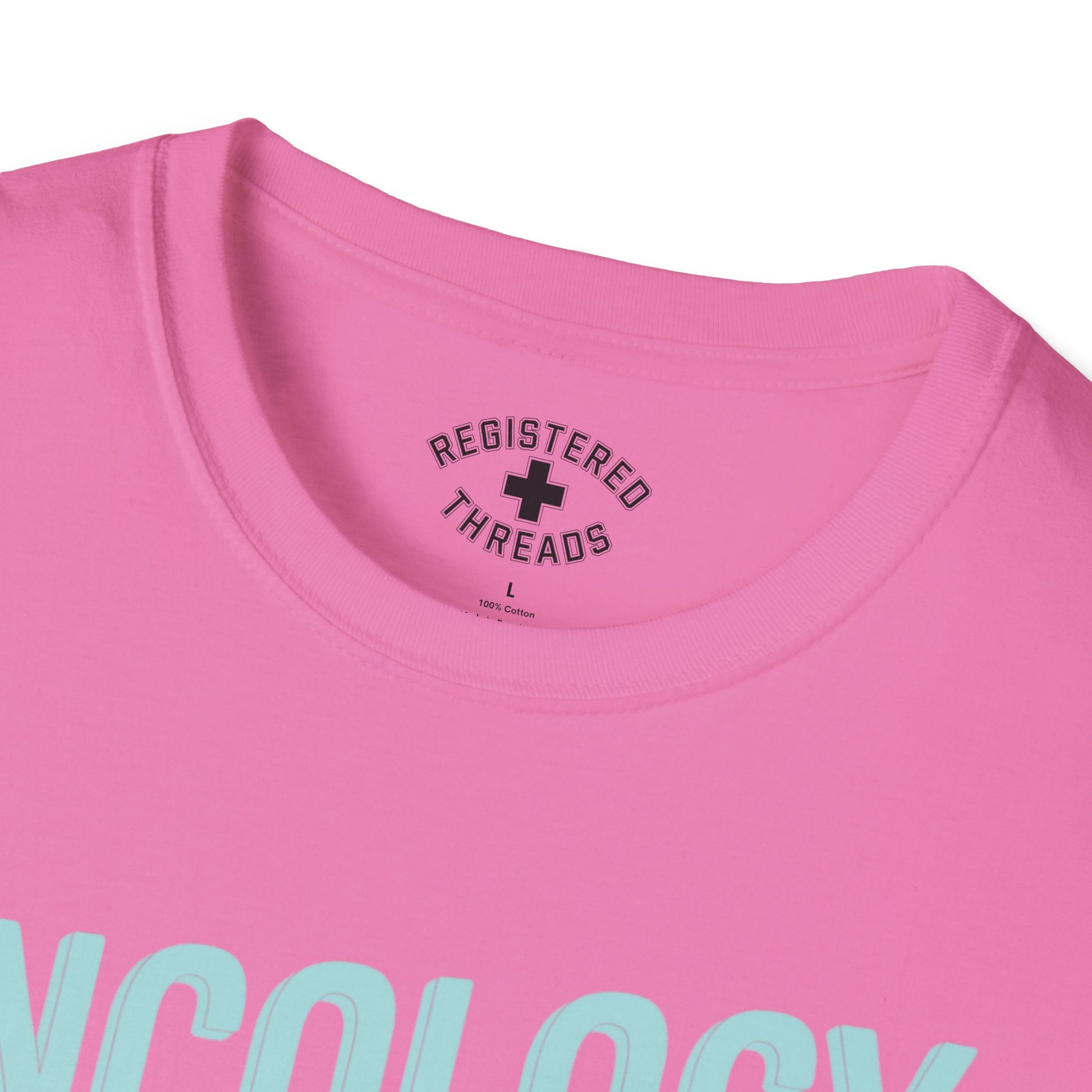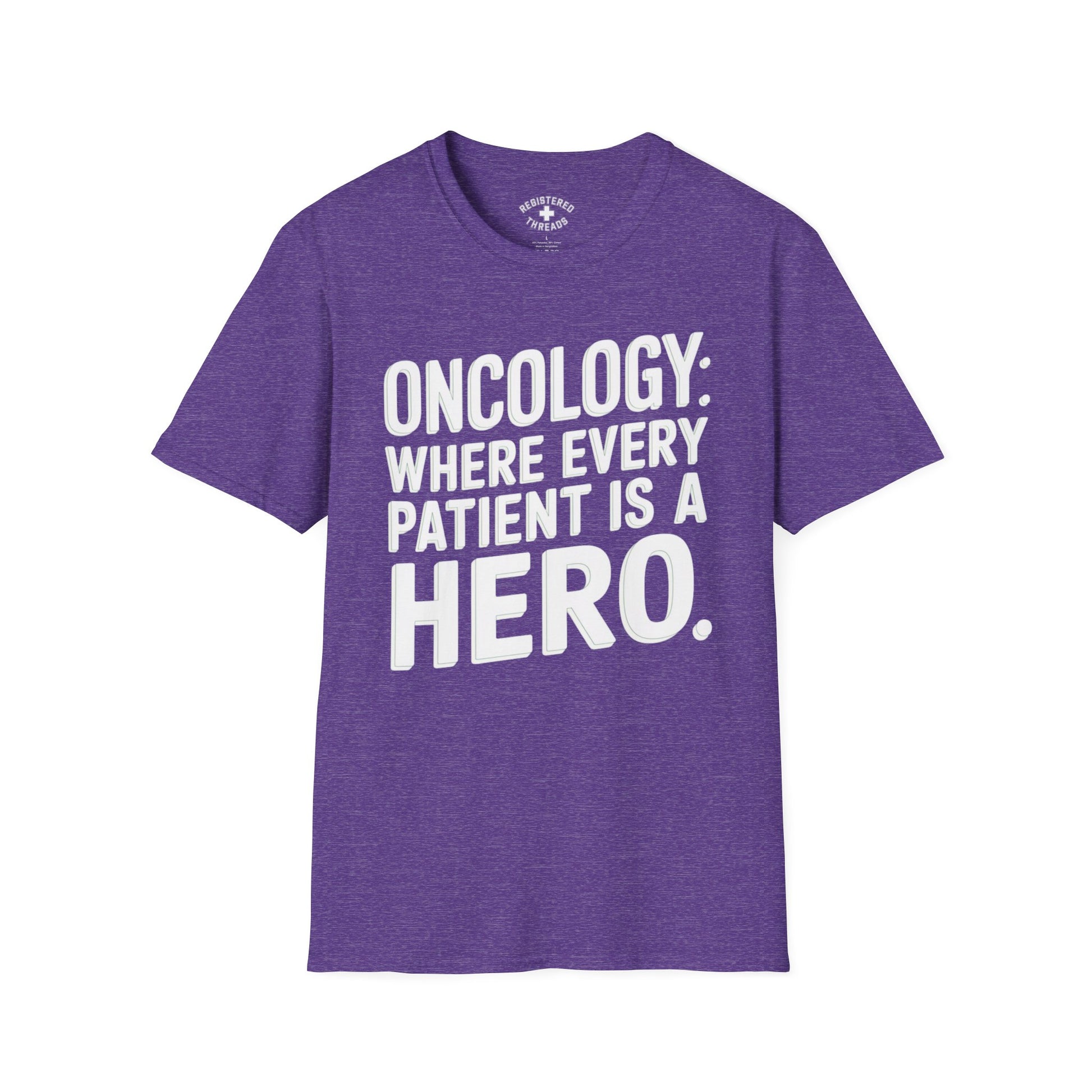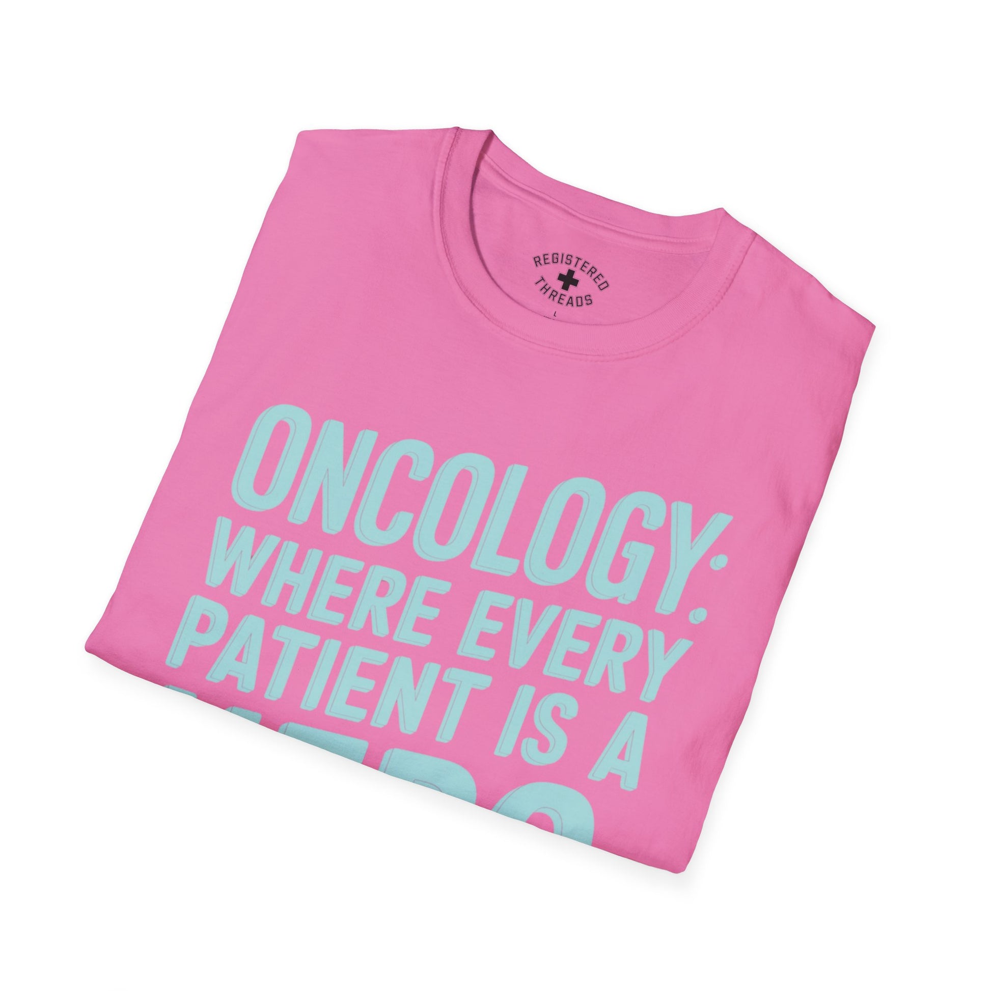 "Oncology Hero" is a Registered Threads original design printed on a premium "softstyle" tee.
