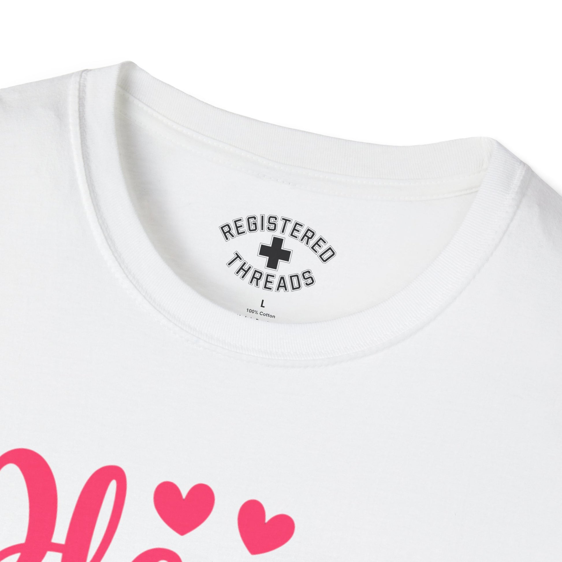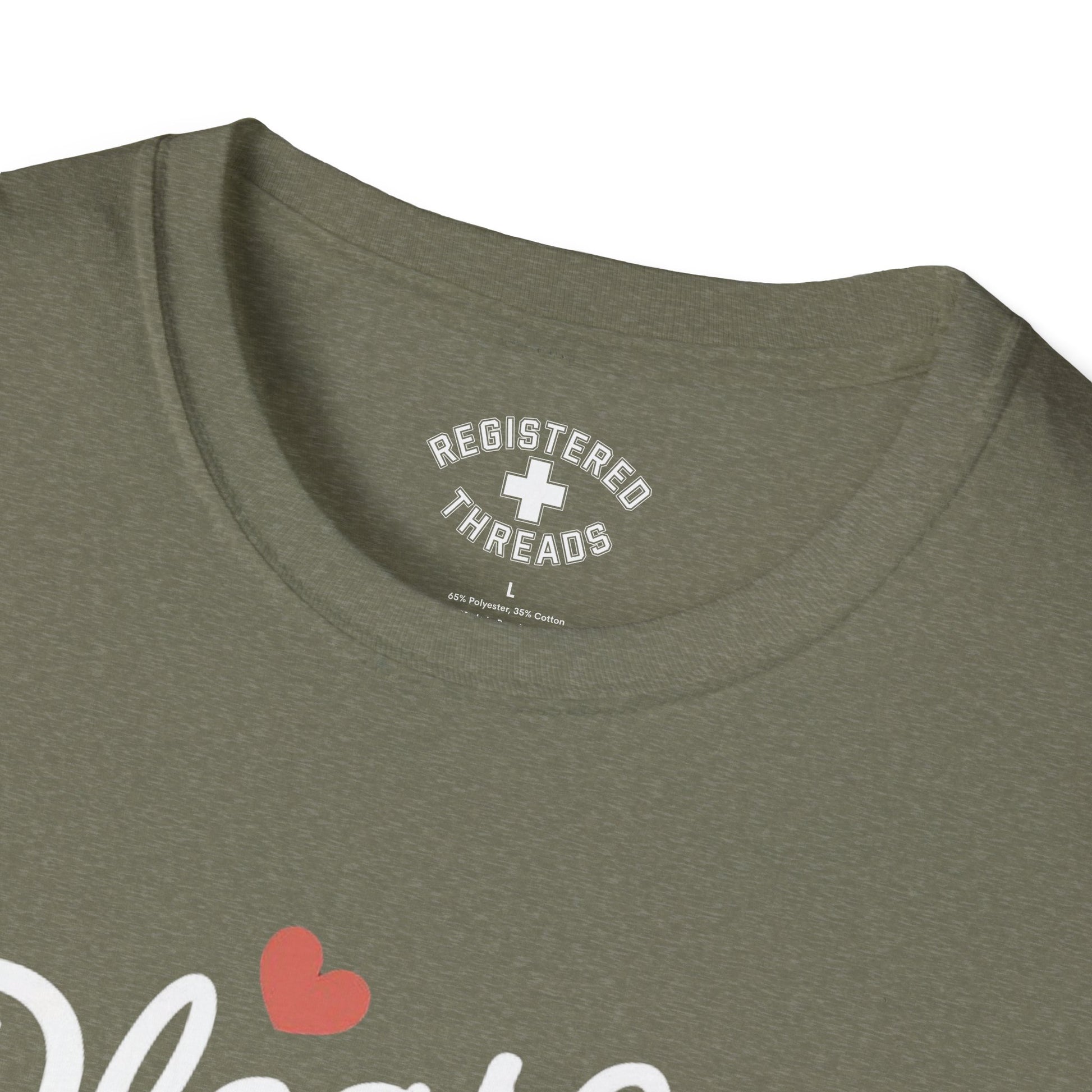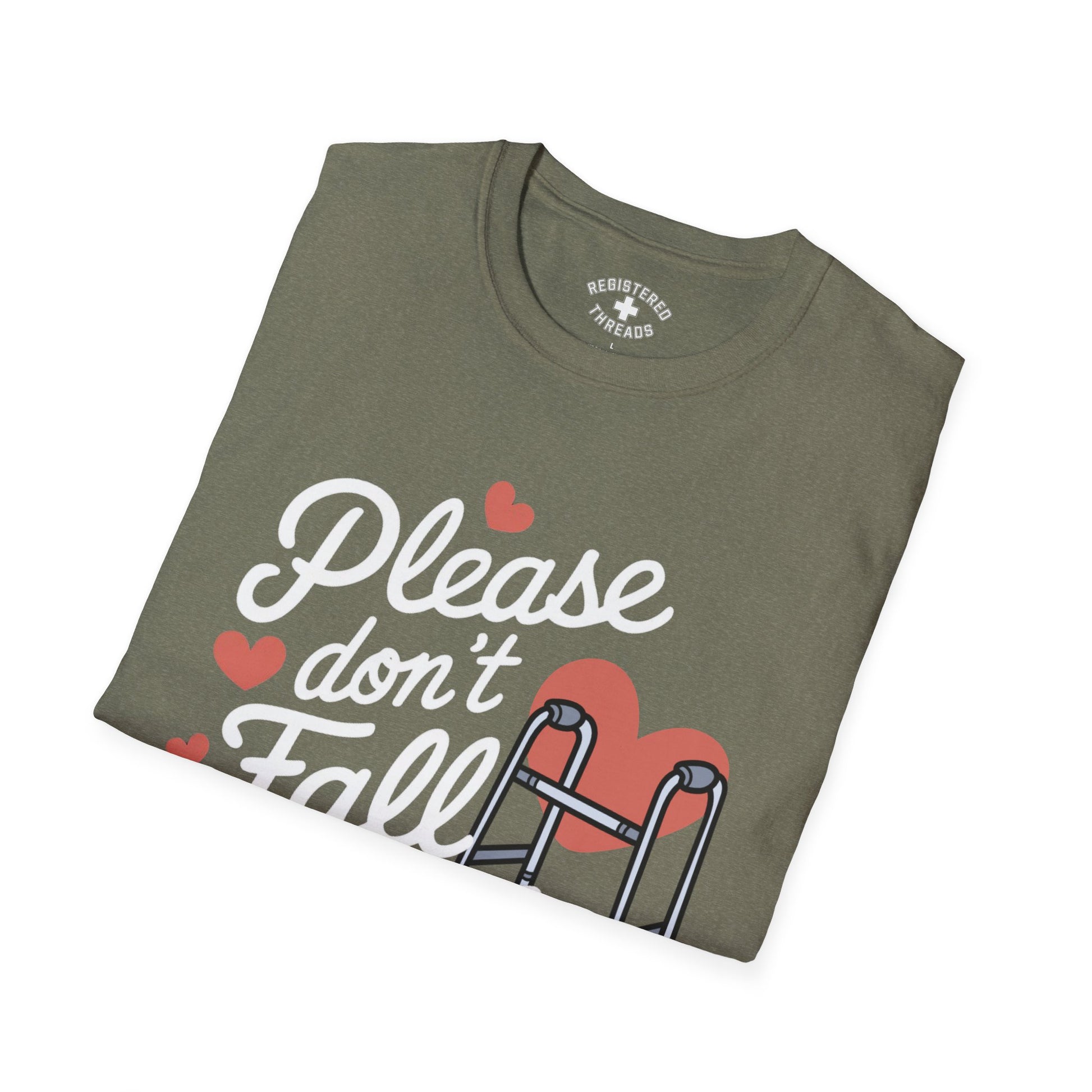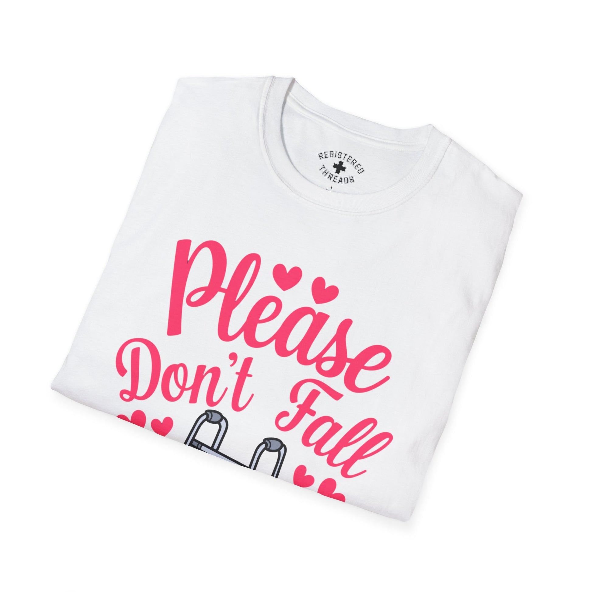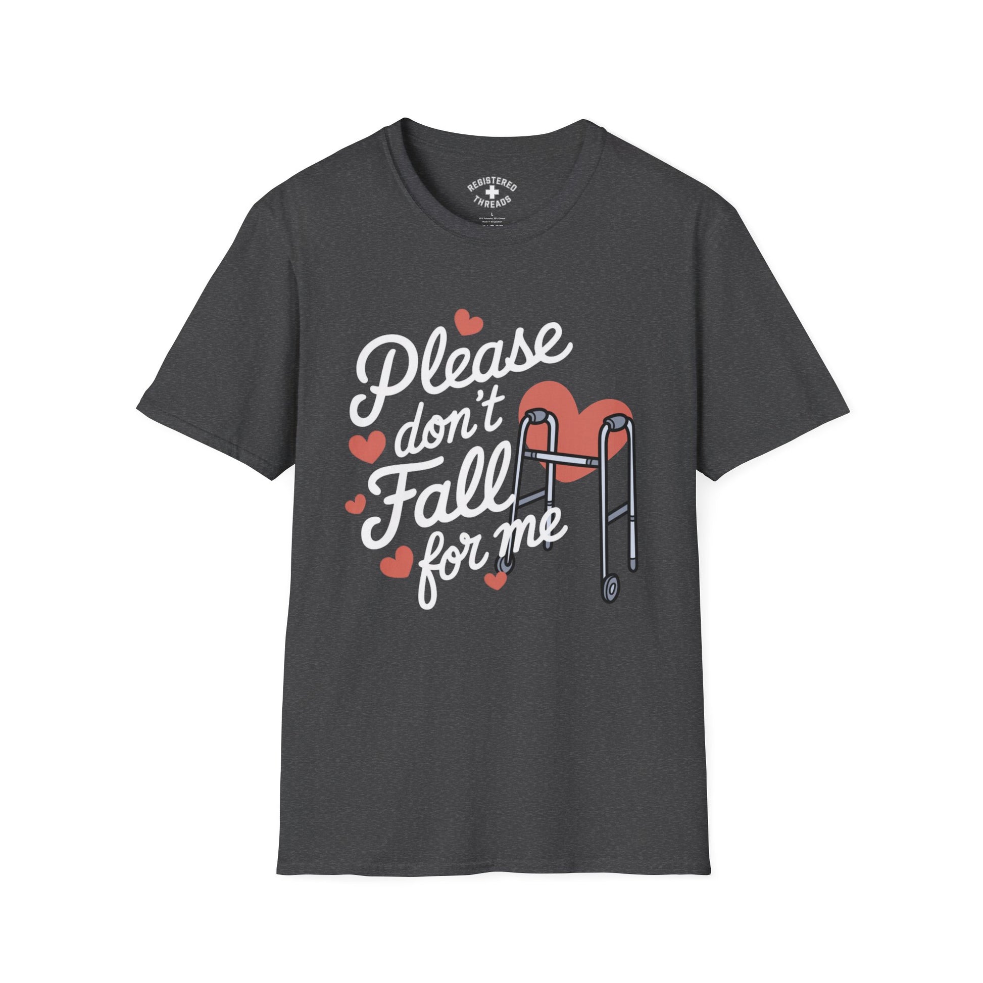 "Please Don't Fall for Me" is a Registered Threads original design printed on a premium "softstyle" tee.