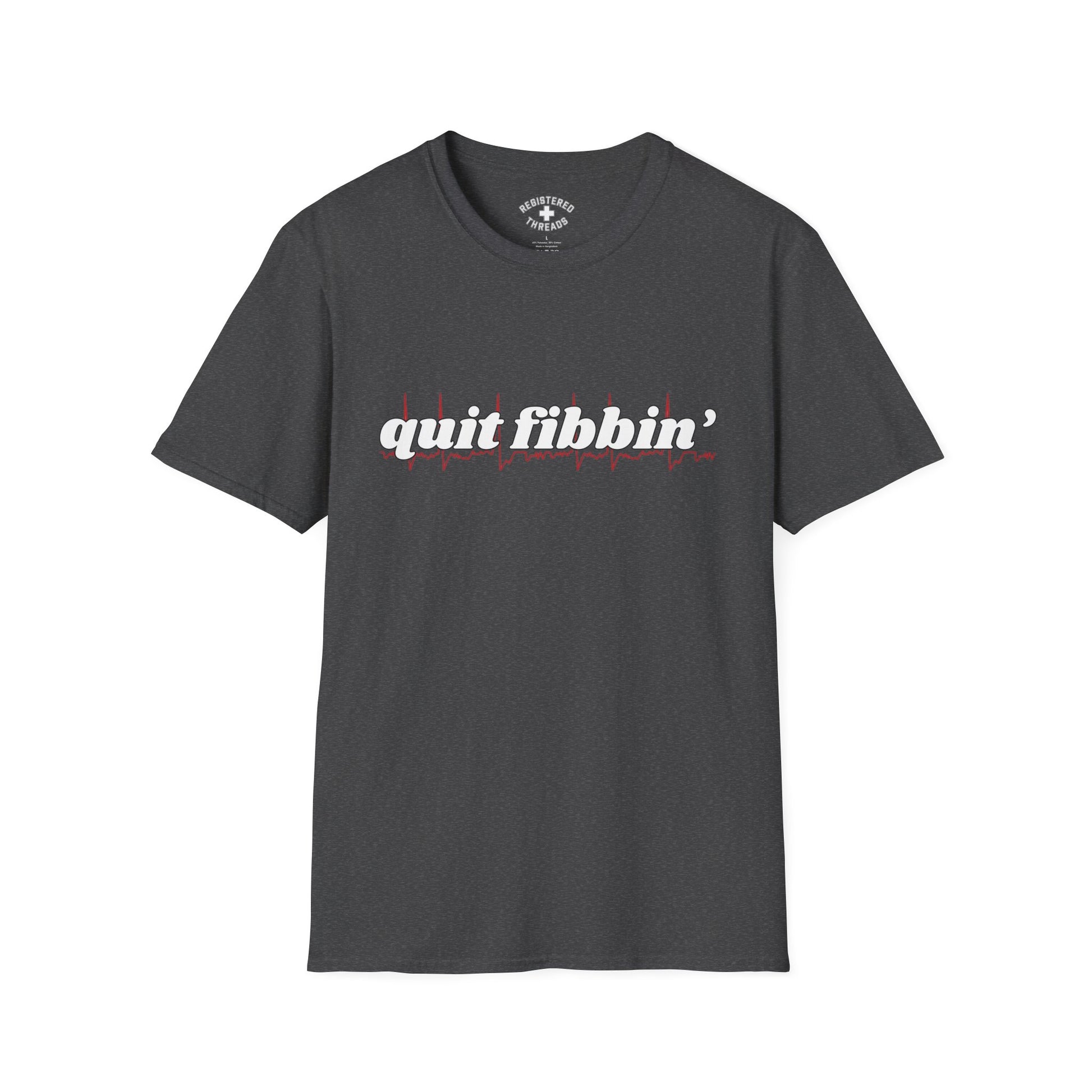 "Quit Fibbin'" is a Registered Threads original design printed on a premium "softstyle" tee.