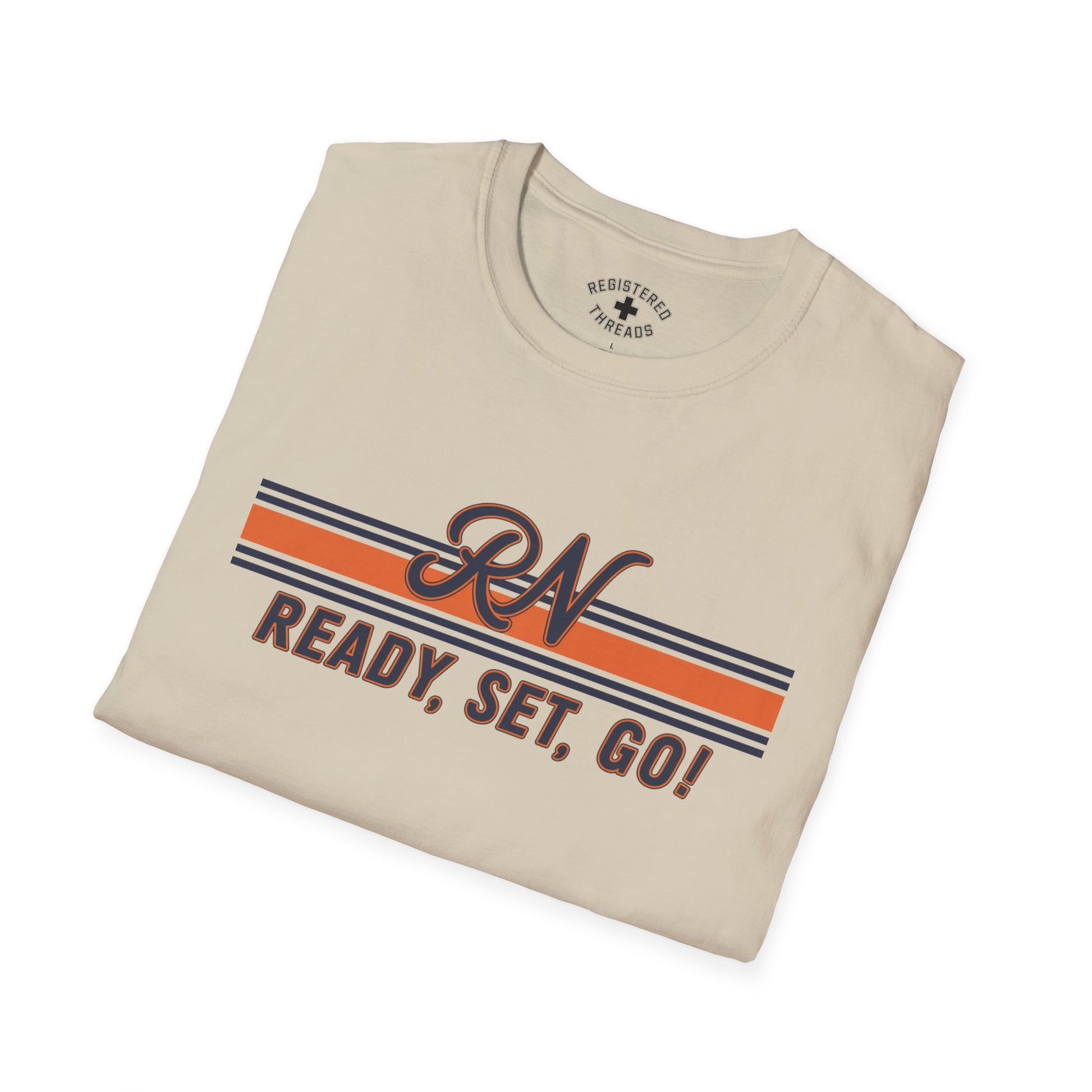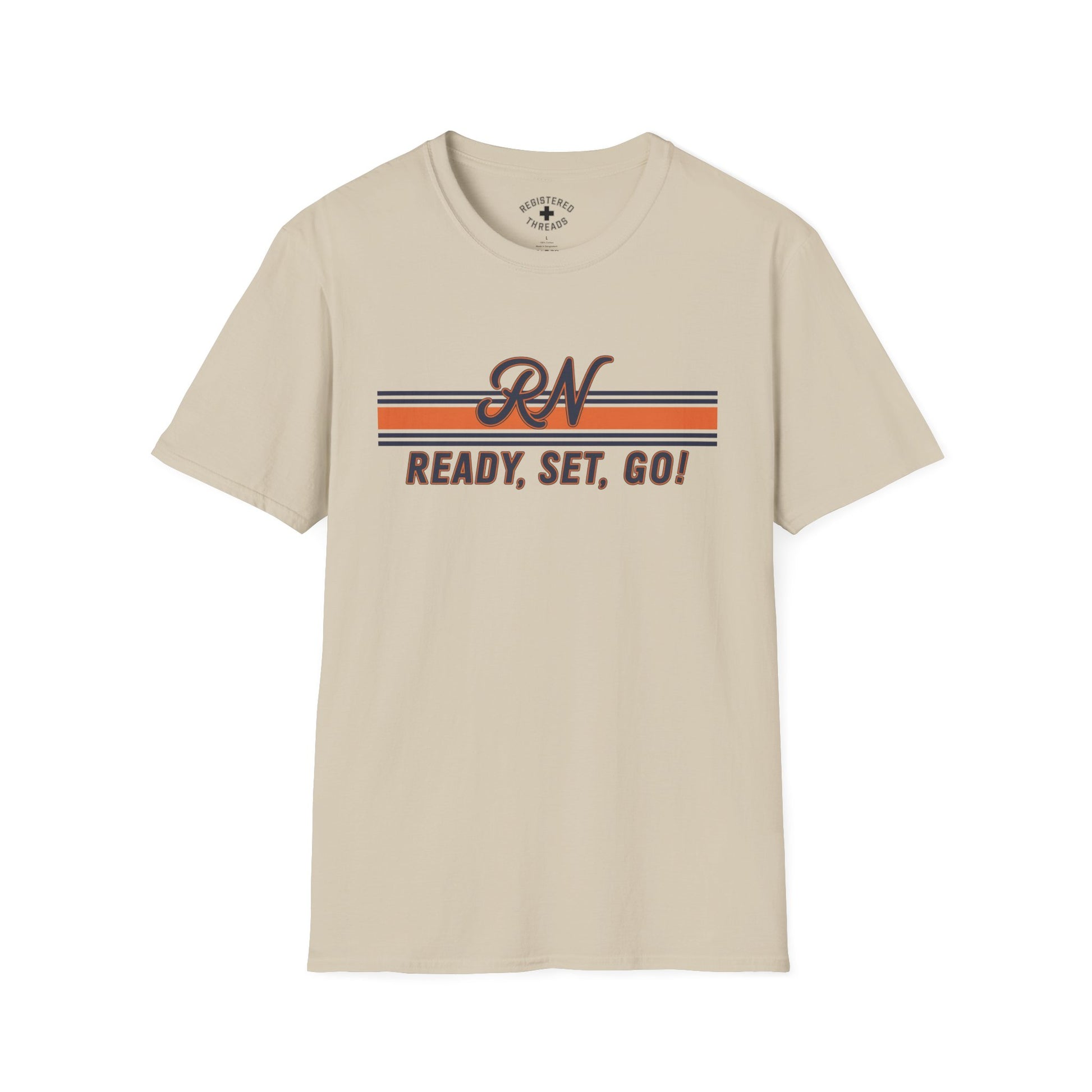 "RN: Ready, Set, Go!" is a Registered Threads original design printed on a premium "softstyle" tee.