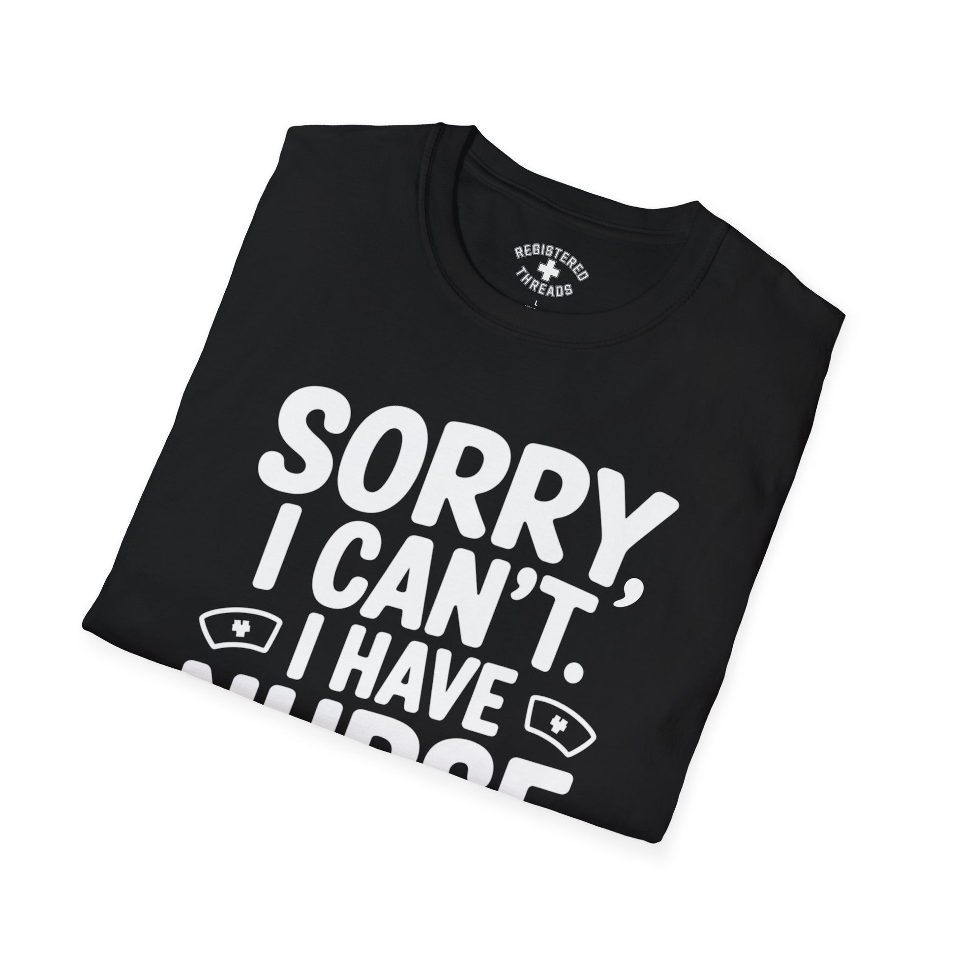 "Sorry, I Can't. I Have Nurse Things to Do" is a Registered Threads original design printed on a premium "softstyle" tee.