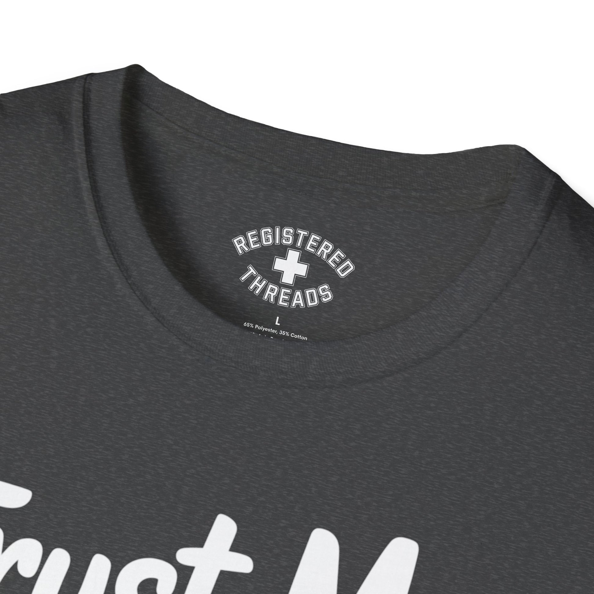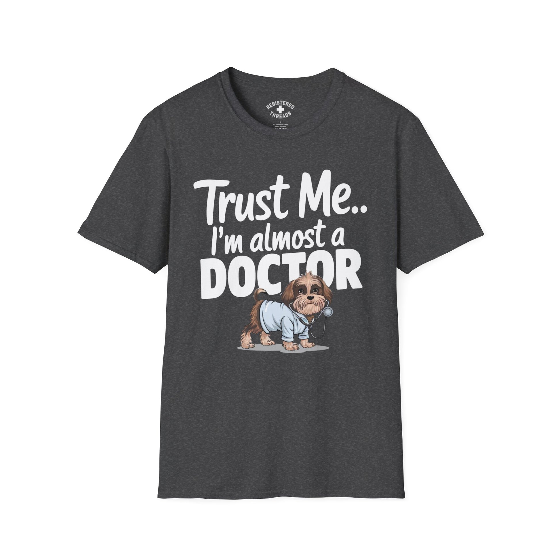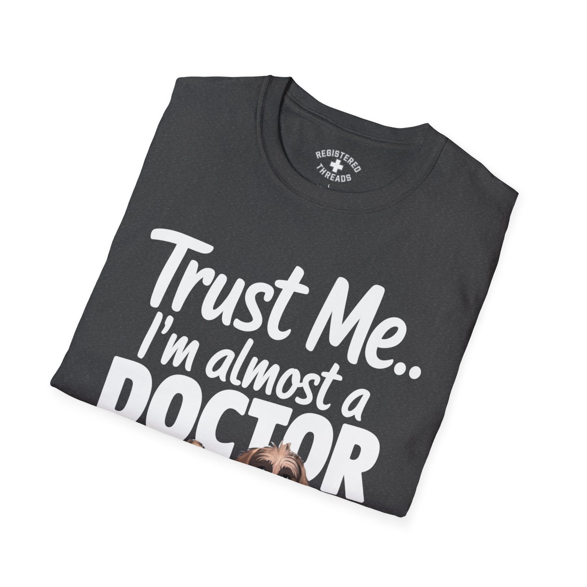 "Trust Me.. I'm Almost a Doctor" is a Registered Threads original design printed on a premium "softstyle" tee.
