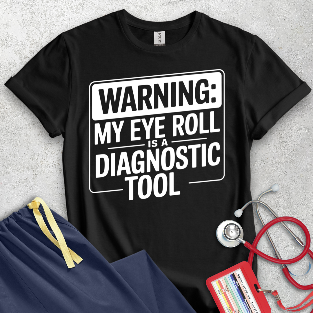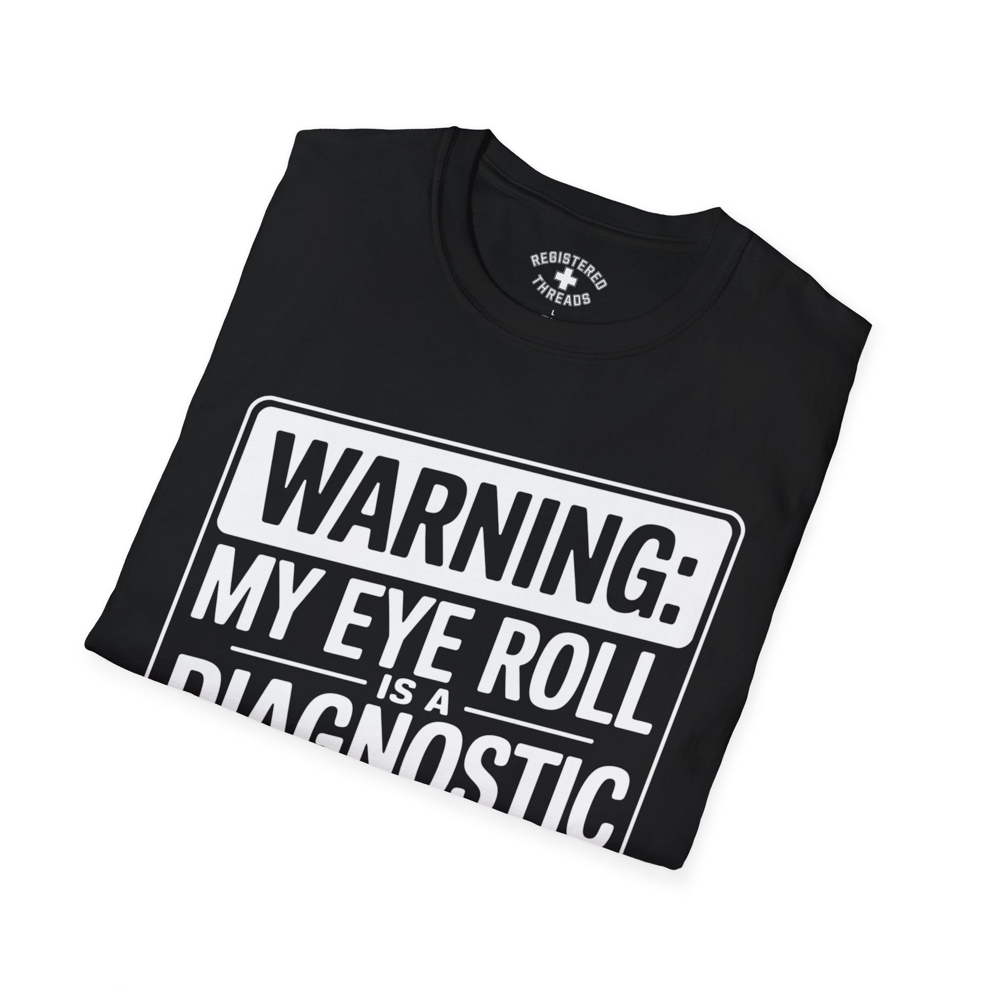 "Warning: My Eye Roll is a Diagnostic Tool " is a Registered Threads original design printed on a premium "softstyle" tee.